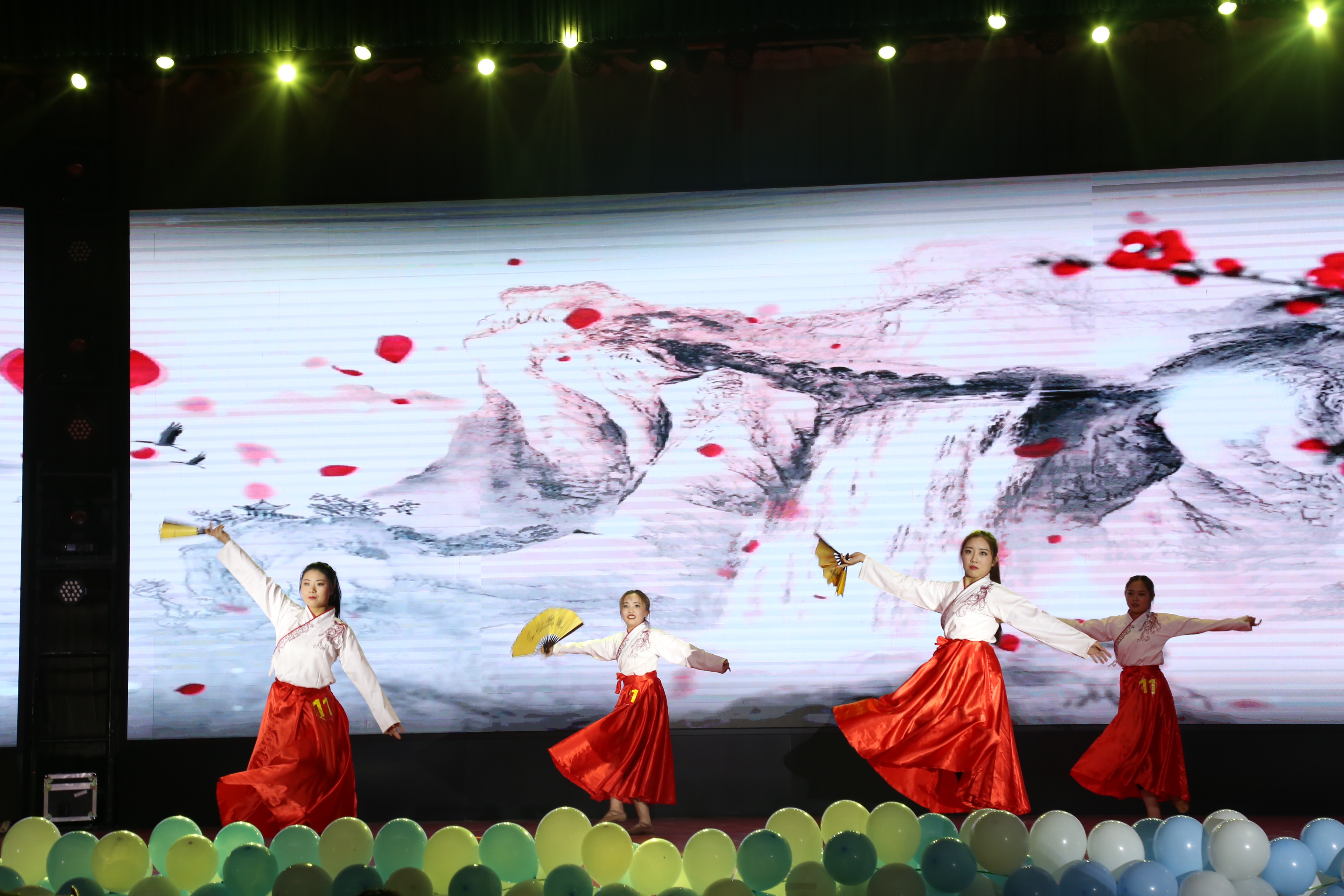 李博涵、刘歆然、翟胜岚、张思仪同学带来舞蹈《关山酒》,优美翩翩,婀娜多姿,四人身着华裳、默契十足,流畅的动作和轻快的舞步展示了一代巾帼的豪气。