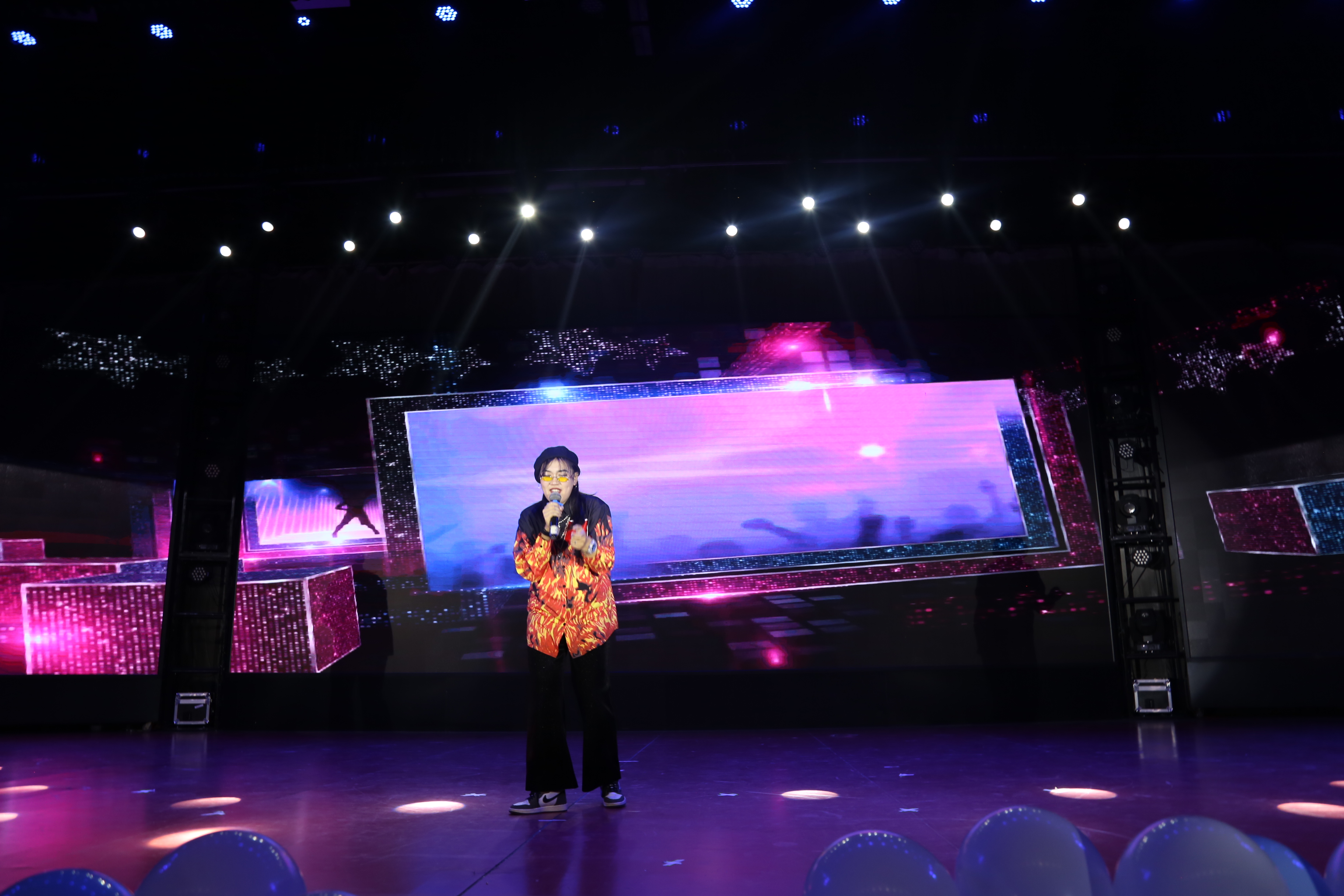 本次比赛共分为两个环节,第一个环节:秀出自我,VCR进行自我介绍、才艺展示,而第二个环节巅峰对决,由多组选手随机组合进行表演。每一位选手得分由评委和现场大众评委举牌打分,观众在进场之前使用手中门票副券也可自主投票。