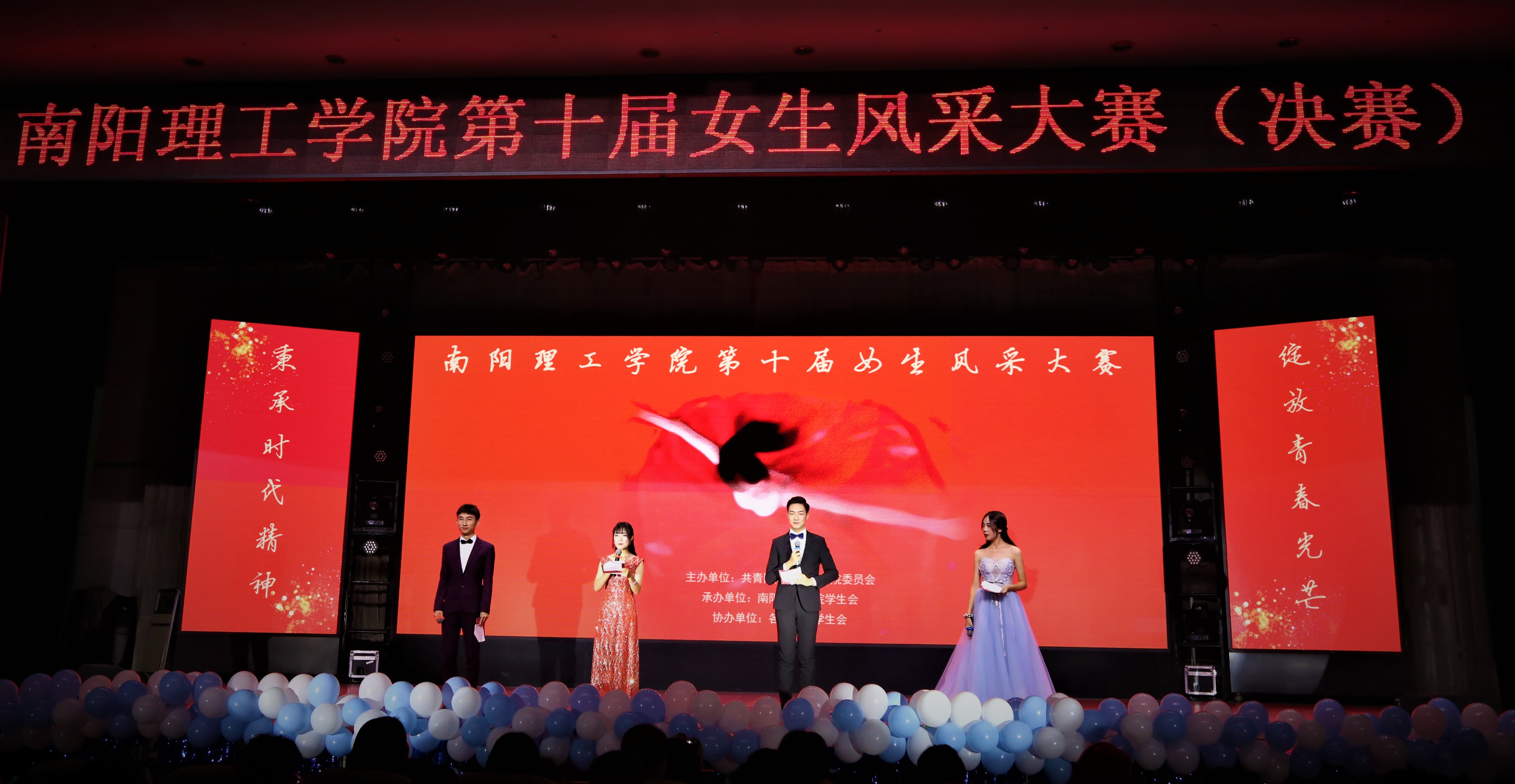 本网讯(学生记者/赵玉帅 石海洋 校对/吴依梦)12月9日,由共青团南阳理工学院委员会主办,南阳理工学院学生会承办,各教学院学生会协办的“秉承时代精神,绽放青春光芒”南阳理工学院第十届女生风采大赛于音乐厅顺利举行。副校长肖泽昌、张铟出席观看了本次大赛,党委学生工作部部长、学生处处长路瑞峰,电子与电气工程学院院长朱清慧,建筑与城市规划学院院长张建文,经济管理学院党委书记张良,电商学院党支书记逯忆,师范学院党委副书记李勇,电子与电气工程学院党委副书记张定群,校团委副书记、校学生会秘书长郭兴华以及800名学生共同观看了此次大赛。本次大赛的评委老师有党委组织部李军老师、文法学院陈硕老师、师范学院邹宓老师、音乐学院刘小婷老师、生化学院陈瑞老师。