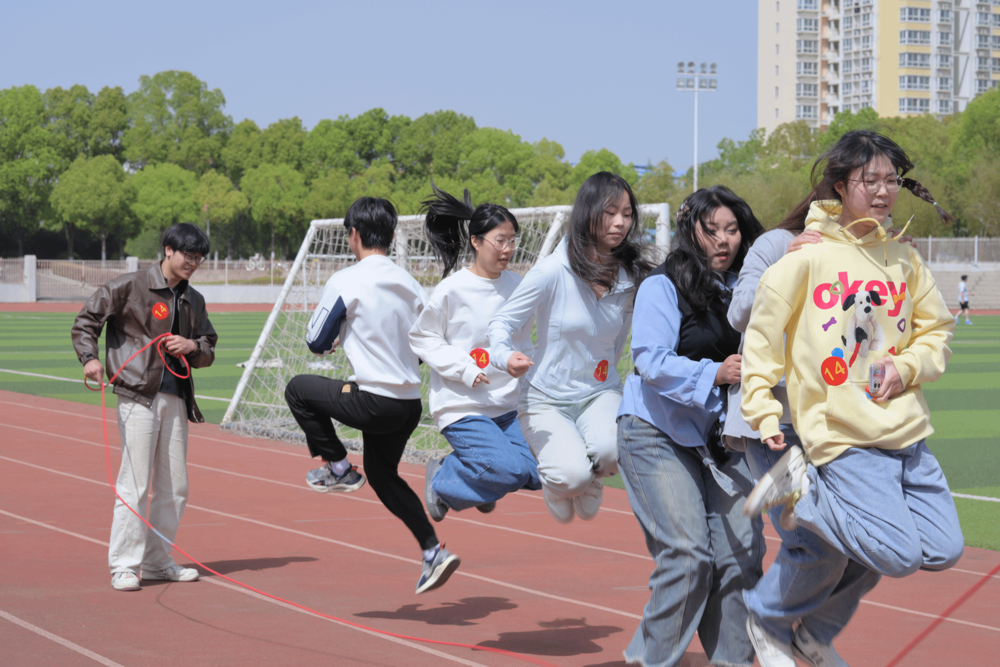 运动会现场,气氛热烈,欢呼声、加油声此起彼伏。比赛项目丰富多样,涵盖了 “接力乒乓球”“达芬奇密码”“袋鼠跳” 等兼具趣味性与挑战性的活动。同学们积极参与,热情高涨,每一个团队都在赛场上挥洒着汗水,展现着团结与拼搏的精神风貌;“多人多足” 考验着搭档间的默契,参赛者们步伐一致,口号响亮,努力向终点迈进;达芬奇密码游戏将智力与策略完美融合,同学们时而低声讨论战术,时而迅速行动,凭借敏锐的观察力和高效的沟通,在紧张的时间限制下完成挑战。每个人在同伴的加油声中突破极限,用汗水与坚持诠释了集体力量。