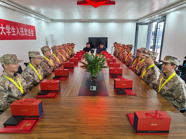 本网讯(特约记者/王文博)3月16日,校党委学生工作部国防教育和征兵办公室周密、王文博老师前往南阳市优胜军事拓展训练研学基地,为我校2026年上半年入伍大学生举行欢送会。