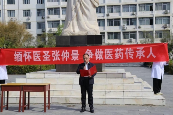 张仲景国医国药学院举行“敬缅医圣仲景·续写中医华章”祭拜活动,活动现场学院领导追忆张仲景“勤求古训、博采众方”的治学理念与“医者仁心、心系黎民”的济世情怀,学生代表领读医学生誓词,全体师生向仲景塑像行三鞠躬礼、签名寄语,在庄重仪式中深化对中医药文化的认知与认同。