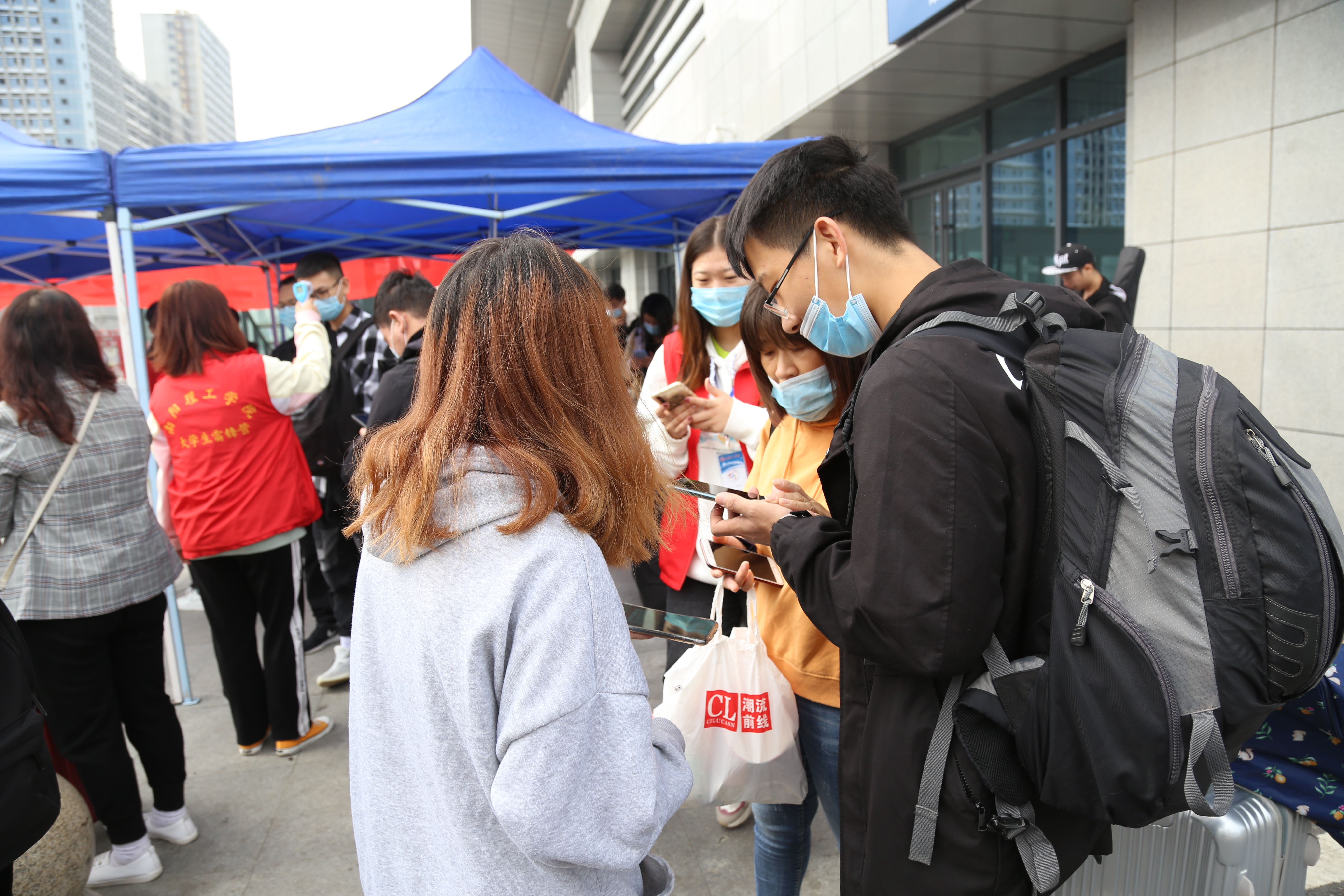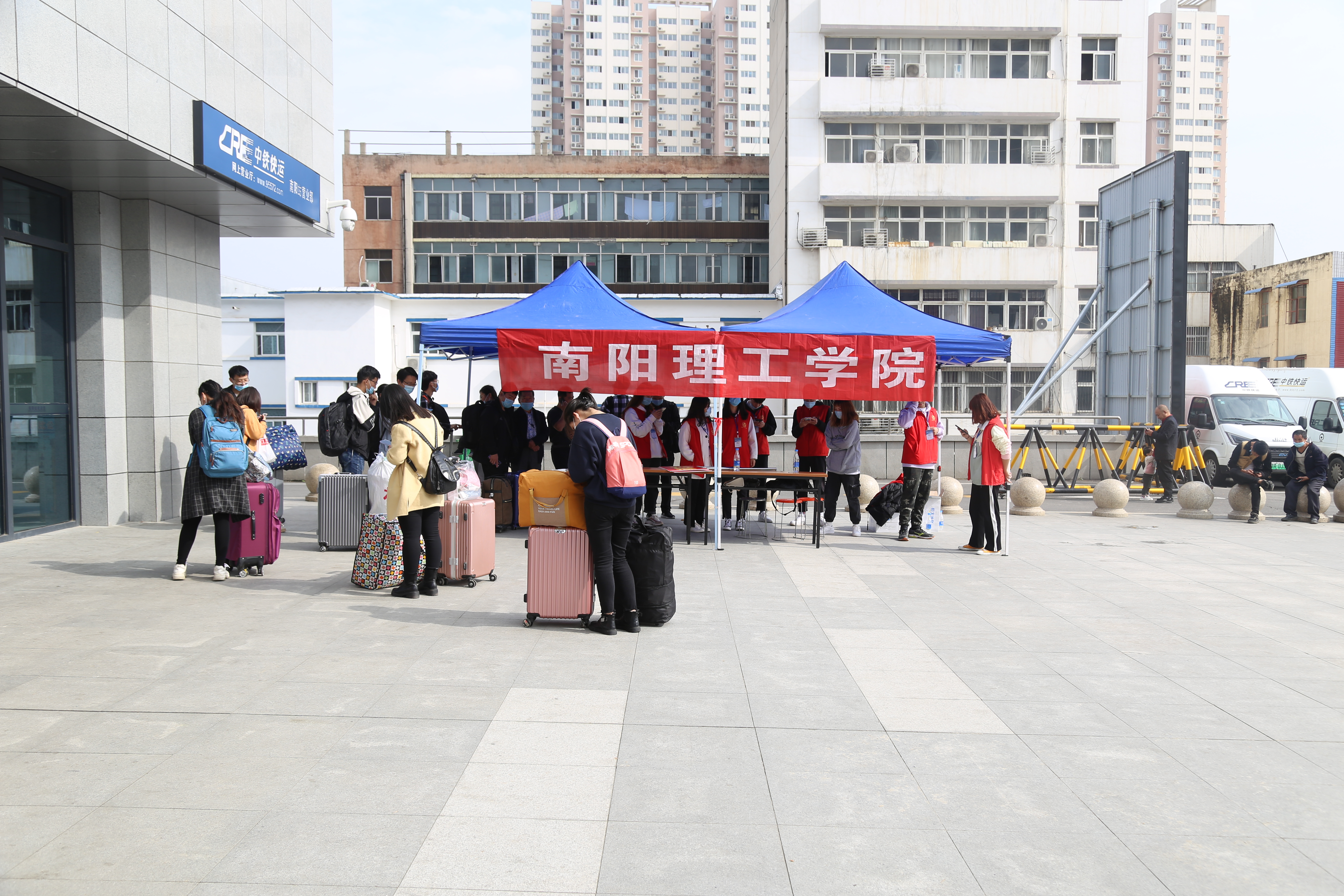 在南阳站出站口正对面,设有南阳理工学院新生临时接待处,迎接乘坐火车到校报道的新生。志愿者们不辞辛苦坚守在在火车站随时待命,为到站新生做好服务。