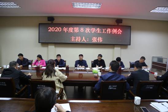 10月12日,校党委副书记、工会主席张伟主持召开我校2020年度第8次学生工作例会。学生处、团委、心理健康教育中心、保卫处、后勤服务中心、校医院等单位主要负责人,各教学院党委副书记参加会议。