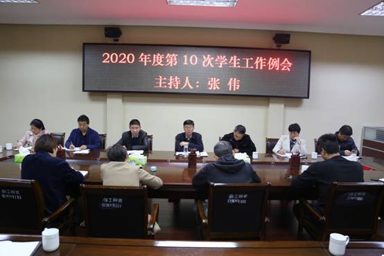 11月16日下午,校党委副书记、工会主席张伟主持召开我校2020年度第10次学生工作例会。学生处、团委、心理健康教育中心、保卫处、后勤服务中心、校医院等单位主要负责人,各教学院党委副书记参加会议。