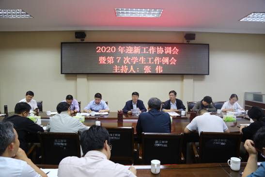 9月28日,校党委副书记、工会主席张伟主持召开我校2020年迎新工作协调会暨第7次学生工作例会。党政办、宣传部、学生处、保卫处、教务处、招生就业处、财务处、团委、心理健康教育中心、信息化建设与管理中心、后勤服务中心、校医院等单位负责人,各教学院党委书记参加会议。