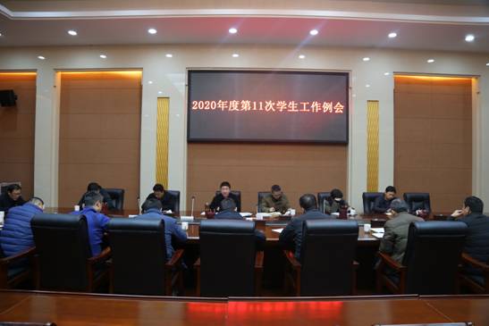 11月30日下午,我校召开2020年度第11次学生工作例会。学生处、团委、心理健康教育中心、保卫处、后勤服务中心、校医院等单位主要负责人,各教学院党委副书记参加会议。会议由党委学生工作部部长、学生处处长路瑞峰主持。