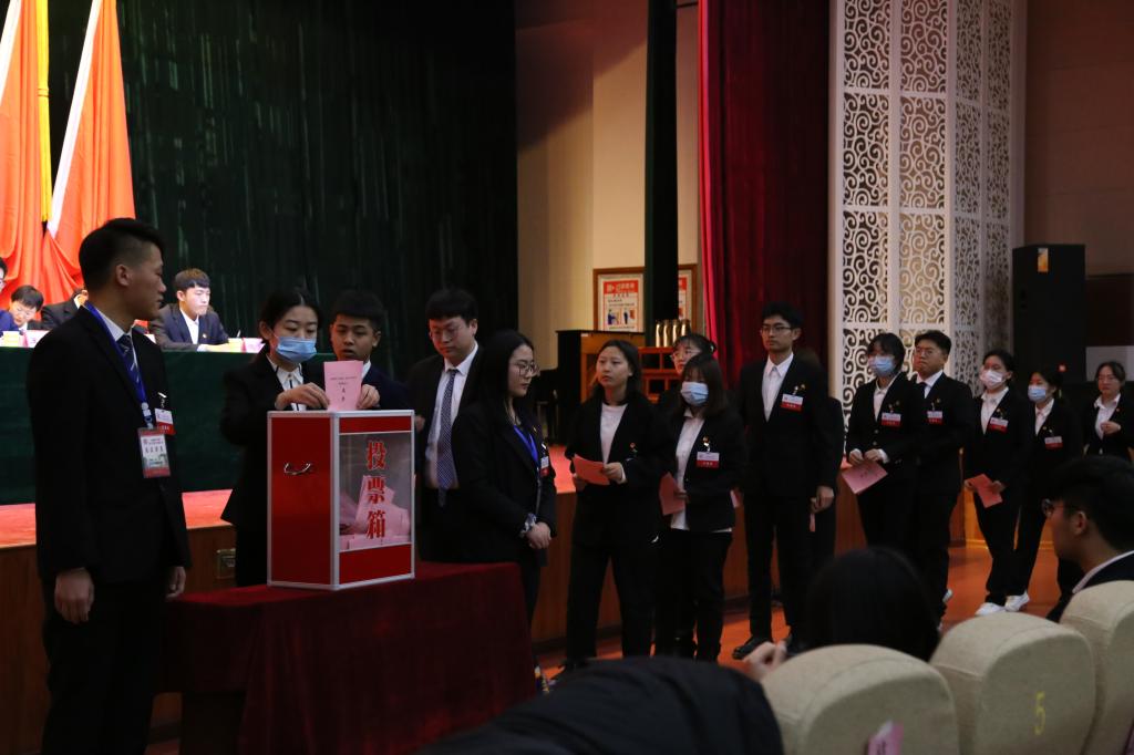 监票人及计票人离场后,杨金宇宣布南阳理工学院第三次学生代表大会第二次全体会议结束。