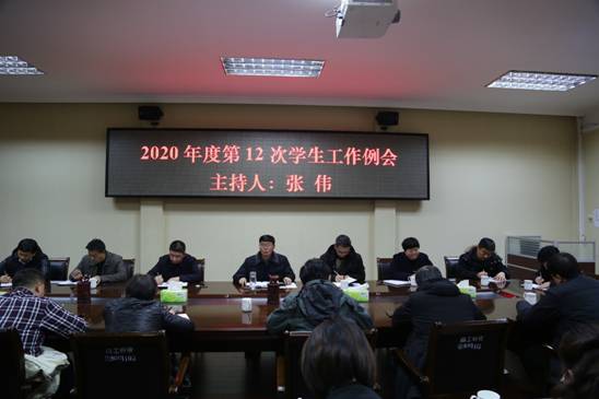 12月21日下午,校党委副书记、工会主席张伟主持召开我校2020年度第12次学生工作例会。学生处、团委、心理健康教育中心、保卫处、后勤服务中心、校医院等单位主要负责人,各教学院党委副书记参加会议。