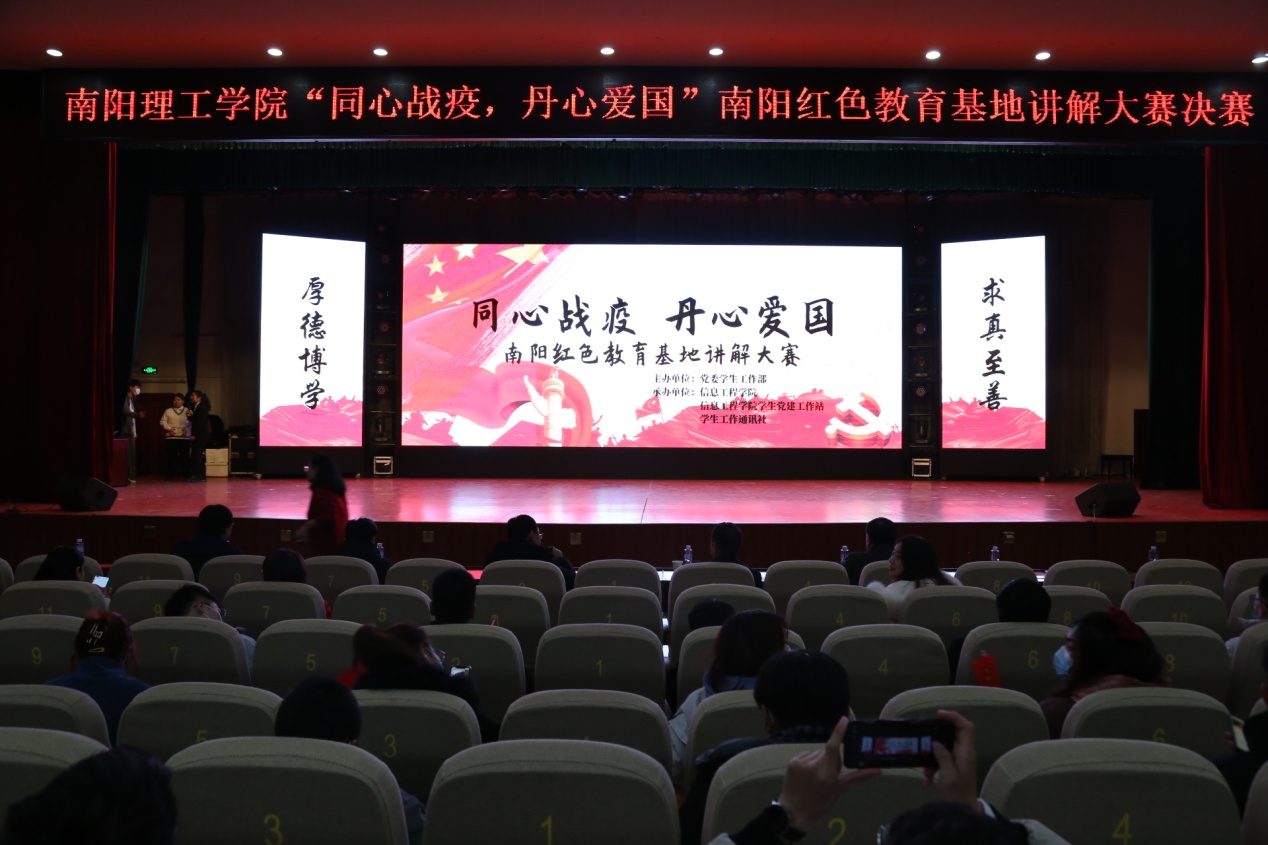本网讯(学生记者/学通社 李涵 陈淑婷 校对/叶煜坤)1226日,由党委学生工作部主办,信息工程学院、信息工程学院党建工作站、学生工作通讯社联合承办的同心战疫,丹心爱国南阳红色教育基地讲解大赛在毕业大厅顺利举行。南阳理工学院党委学生工作部部长路瑞峰、党委组织部副部长丁欢、党委宣传部副部长田进军、党委学生工作部副部长白林驰、信息工程学院党委副书记张哲及八百余名同学共同观看了本次大赛。
