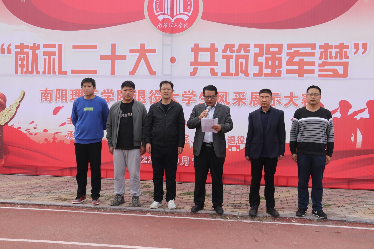 本网讯(特约记者/路守通 王吉春)10月15日,我校“献礼二十大·共筑强军梦”退役大学生风采展示大赛在西北校区田径场成功举办。副校长葛晨光出席并观看比赛,党委学生工作部部长路瑞峰、生物与化学工程学院党委书记康磊、部分教职工及退役大学生代表参加此次活动。