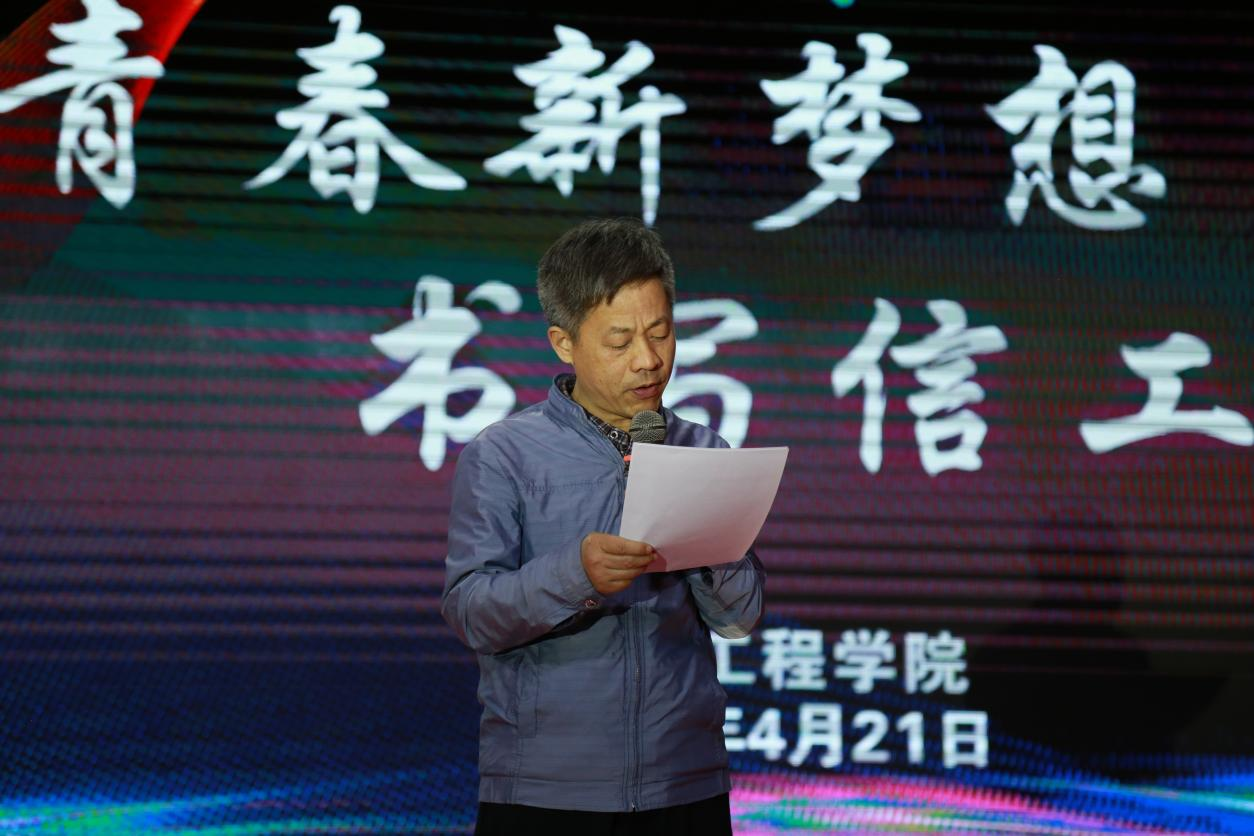 本网讯(学生记者/学通社 付雅欣 叶治何 校对/王雅洁)4月21日,由信息工程学院主办的“舞动青春新梦想,书写信工新华章”迎新晚会在西北校区毕业大厅顺利举行。出席本次晚会的有各学院领导、老师。