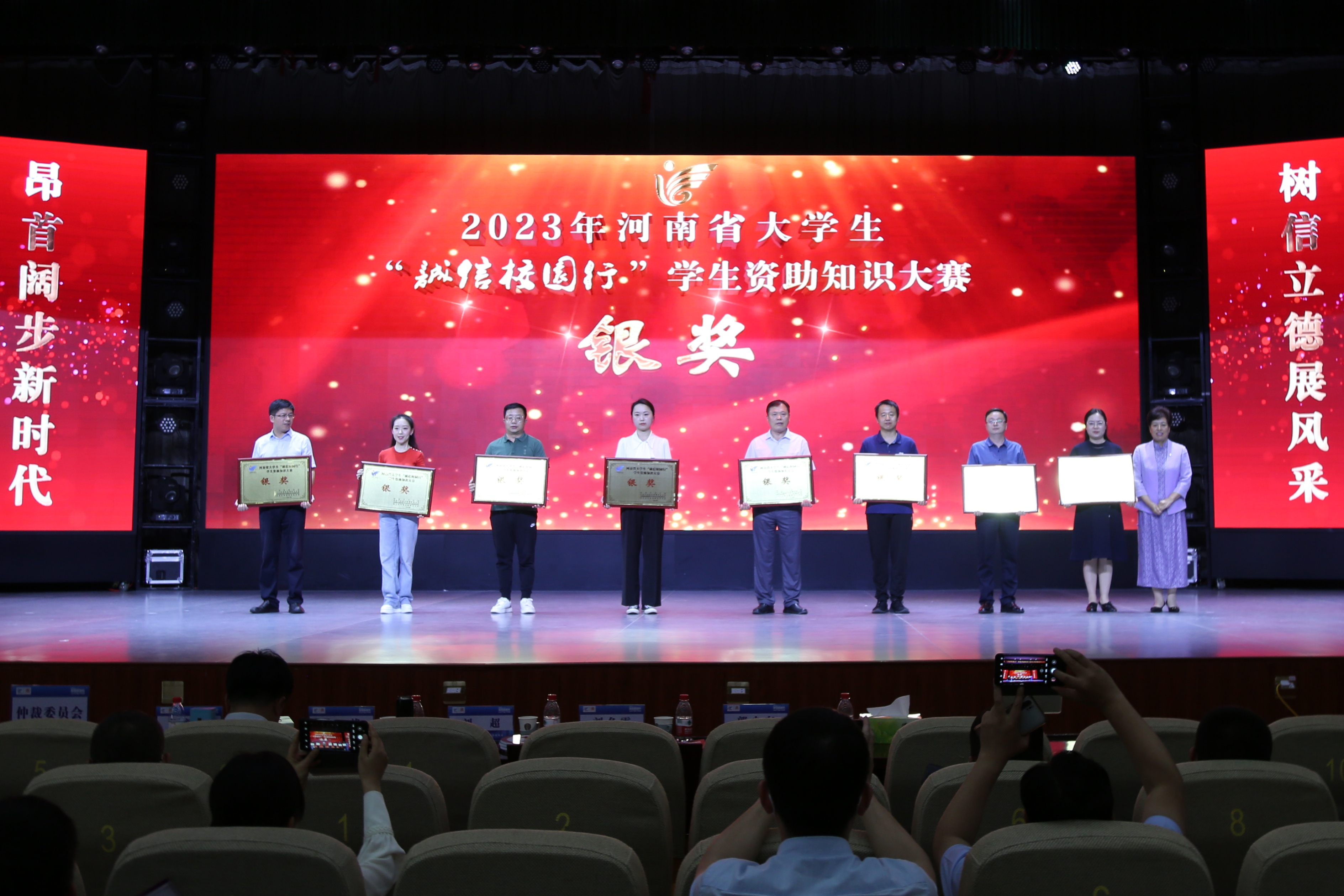 5月29日-6月1日,由河南省教育厅、中国人民银行郑州中心支行、中国银行保险监督管理委员会河南监管局、国家开发银行河南省分行主办,南阳理工学院承办的河南省大学生“诚信校园行”学生资助知识大赛决赛在我校毕业大厅举行。来自全省7个复赛区共36所高校参加了此次总决赛,我校代表队荣获本次大赛“最佳风尚奖”、“最佳组织奖”和“团体银奖”三项大奖,获得奖项数位居全省前列。