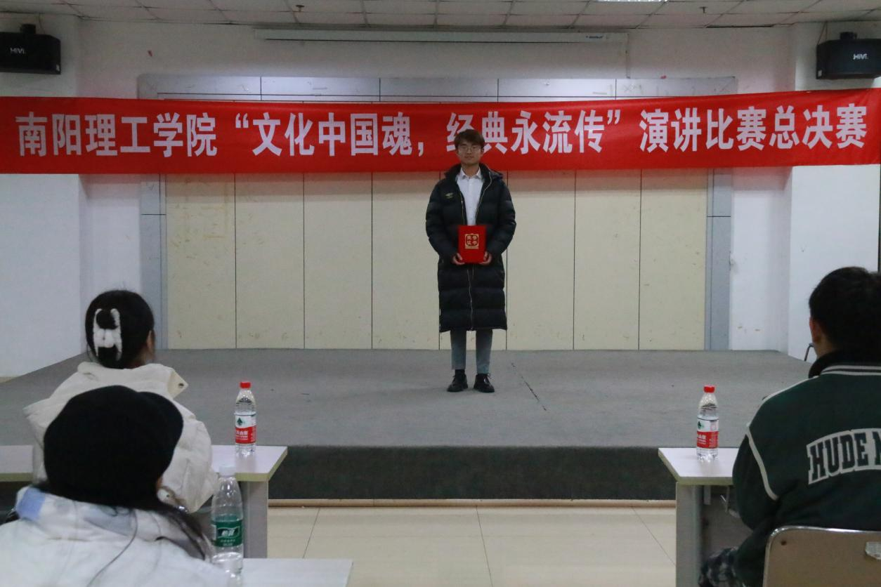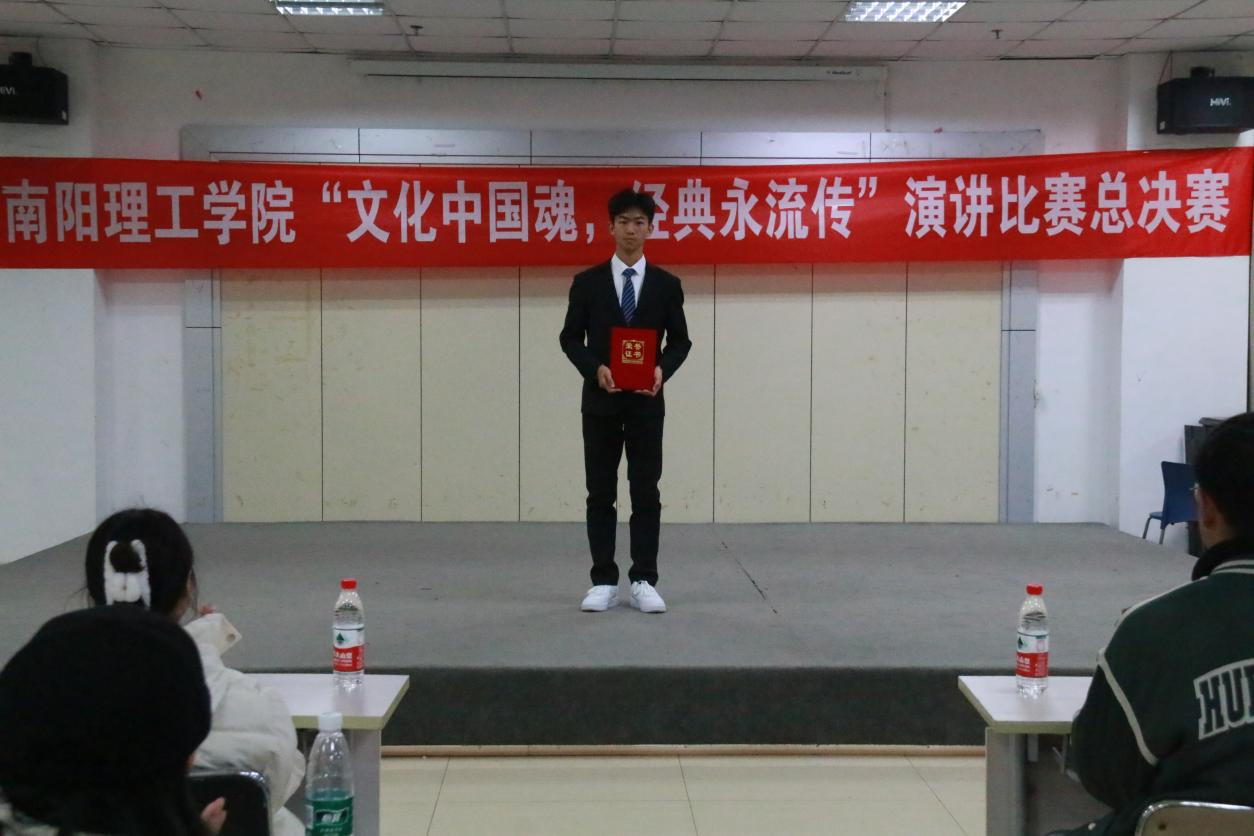 在主持人的开场白中,总决赛正式开始。首先上场的是1到11号参赛选手,他们慷慨激昂,观众的情绪也被选手的激情所带动。其中参赛选手魏国元以一篇《长江》“滚滚长江东逝水,浪花淘尽英雄”让我们看到一位激扬文字,挥斥方遒的志士抒发自己对中国魂的见解。王乐乐选手带领听众品读四大名著,告诉我们文字穿越千年仍与当代读者产生共鸣。中场休息五分钟后,12到21号选手的比赛继续进行。选手们选材各异:传统中医创新与传承、戏曲的兴衰以及从古至今能人义士在琴棋书画,唐诗宋词上的传承和发展,弘扬中华优秀传统文化,展现民族精神,谱写华学子的精彩篇章。石枭雄选手读文化经典,品中华儿女为天地立心,为生民立命,让文化与青春齐飞。陈炫锟选手从国画入手,“岁月失语,为石能言”。大赛将近尾声,主持人宣布本次比赛的成绩,其中专业组黄家帅、张潇、非专业组石枭雄荣获此次比赛的一等奖。