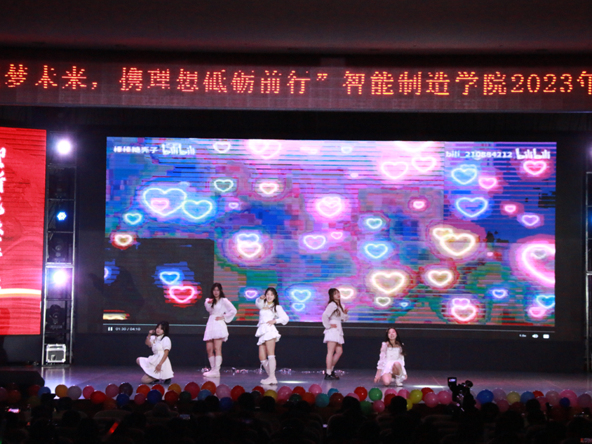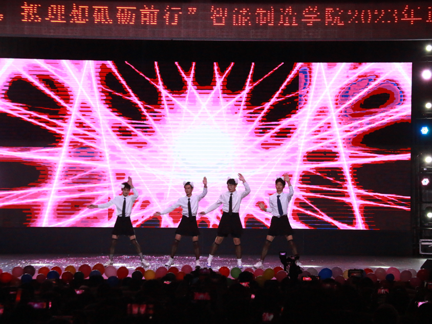 下面是一场用吉他和深情歌声编织的艺术之夜《声声慢》,这不仅仅是一场演出,更是一场音乐和吉他的绵长相依的旅程。晚会的压轴节目是由智能制造学院各位班长部长带来的精彩舞蹈《班长部长舞》,平时严肃认真的形象此刻在舞台上展现出了别样的风采,观众纷纷举起手机想记录下这个鲜少的时刻。最后在主持人对各位观众的美好祝愿中,迎新晚会圆满结束。