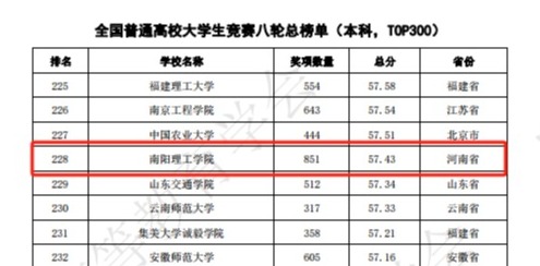 在同期公布的全国普通高校大学生竞赛八轮总榜中,位居全国第228名,省内第9名。