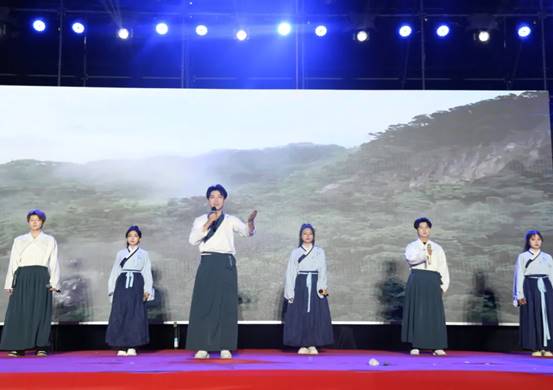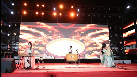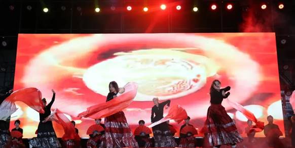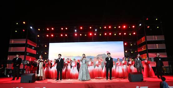 第三篇章“胸怀家国•创未来”,更是将整场晚会推向了高潮。这一篇章展现了吾辈青年胸怀家国的爱国情感和激荡未来的鸿途之志,勉励新生们要努力拼搏,将青春韶华投入到国家发展中去。舞蹈《爱我中华》以翩跹的舞姿生动演绎了中华民族深植于心的团结友爱精神;器乐合奏《象王行》在弦乐交错的象王之吼中弹奏出了中华民族的果敢与智慧;歌曲《烈火战马》在十里旌鼓中燃唱,用恢宏的气势唱出了面对危难时刻人民保家卫国的坚定决心;武术《中华武魂》则在中华武术的精髓中尽显新一代青年的斗志昂扬和满腔热血。晚会最后,一首慷慨激昂的大合唱《歌唱祖国》骤然响起,伴随着舞动的五星红旗,那澎湃的歌声如同热血在沸腾,为这场迎新晚会谱写了壮丽而圆满的终章。