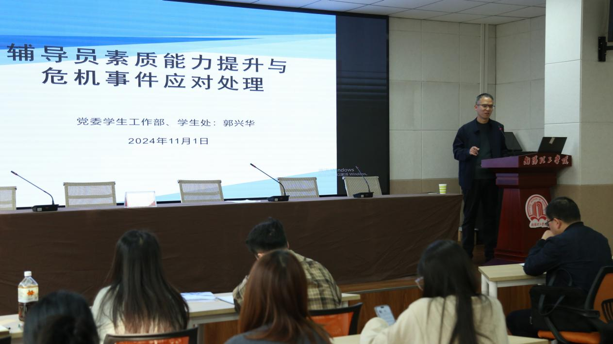 开营仪式结束后,党委学生工作部部长郭兴华以《辅导员素质能力提升与危机事件应对处理》为题,为训练营作第一讲。