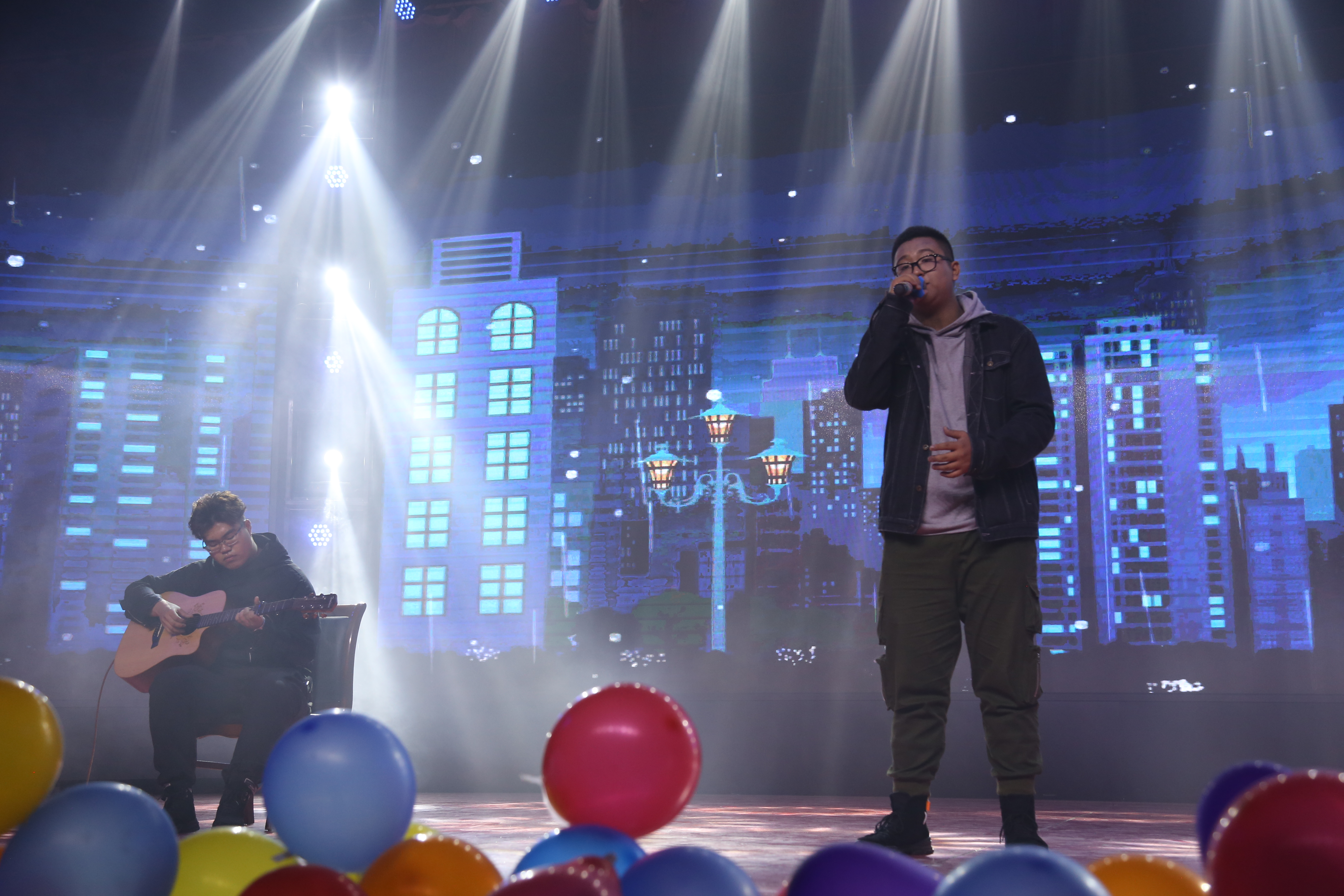 晚会在炫酷的FD街舞中拉开序幕,刘兵、廖可琪带来的歌曲《来自天堂的魔鬼》,她们用嘹亮的高音和低婉的歌喉交织着,述说着不甘屈服,不甘沉沦的信念,让在场的观众有了更深刻的体会。