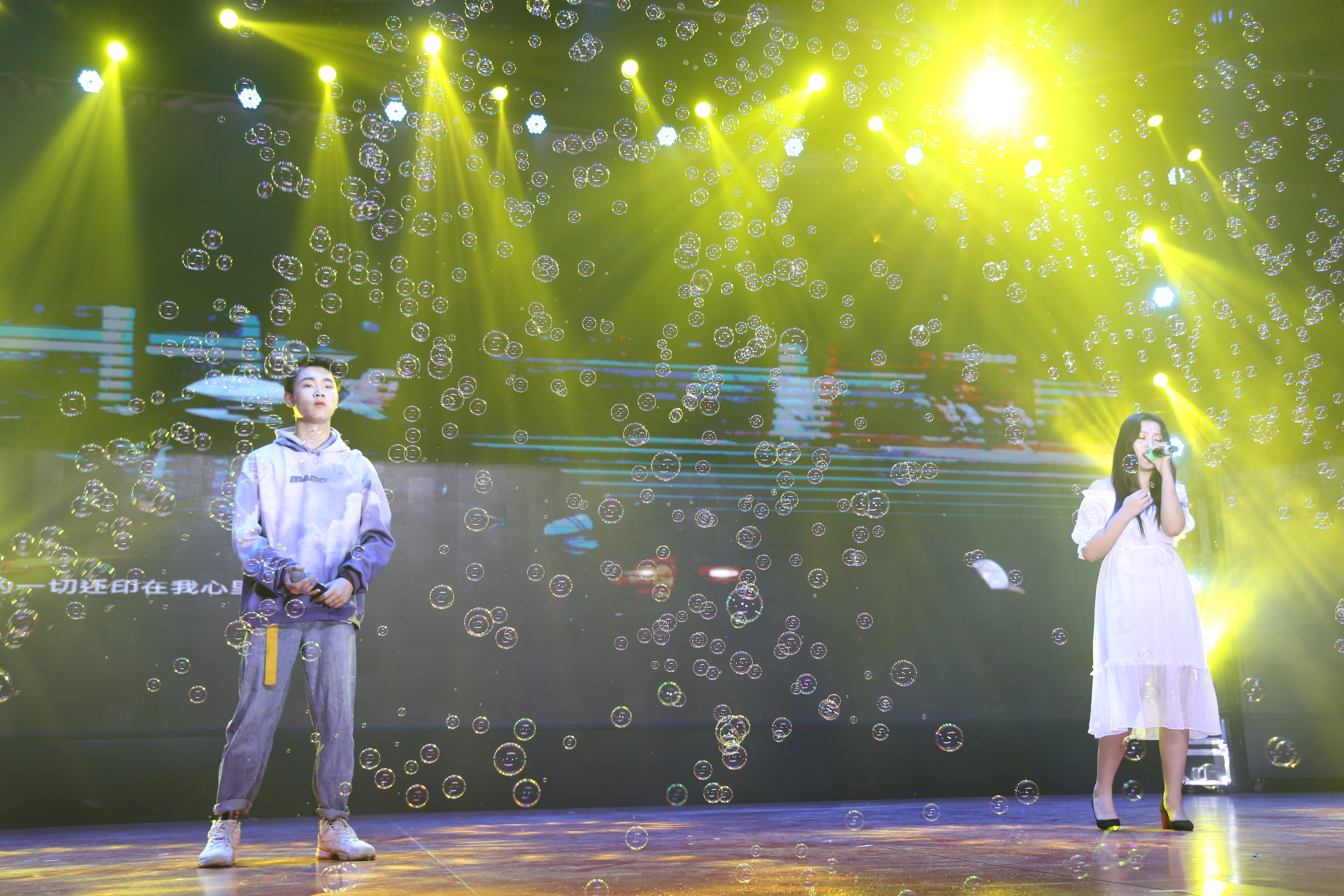 由张辰、刘兵带来歌曲《感谢你曾来过》,随着舞台上七彩泡泡升起,动人的歌声带领着观众去体验浪漫的爱情,回忆不断地浮现,似乎在重现那场不后悔的爱情,使观众产生共鸣。