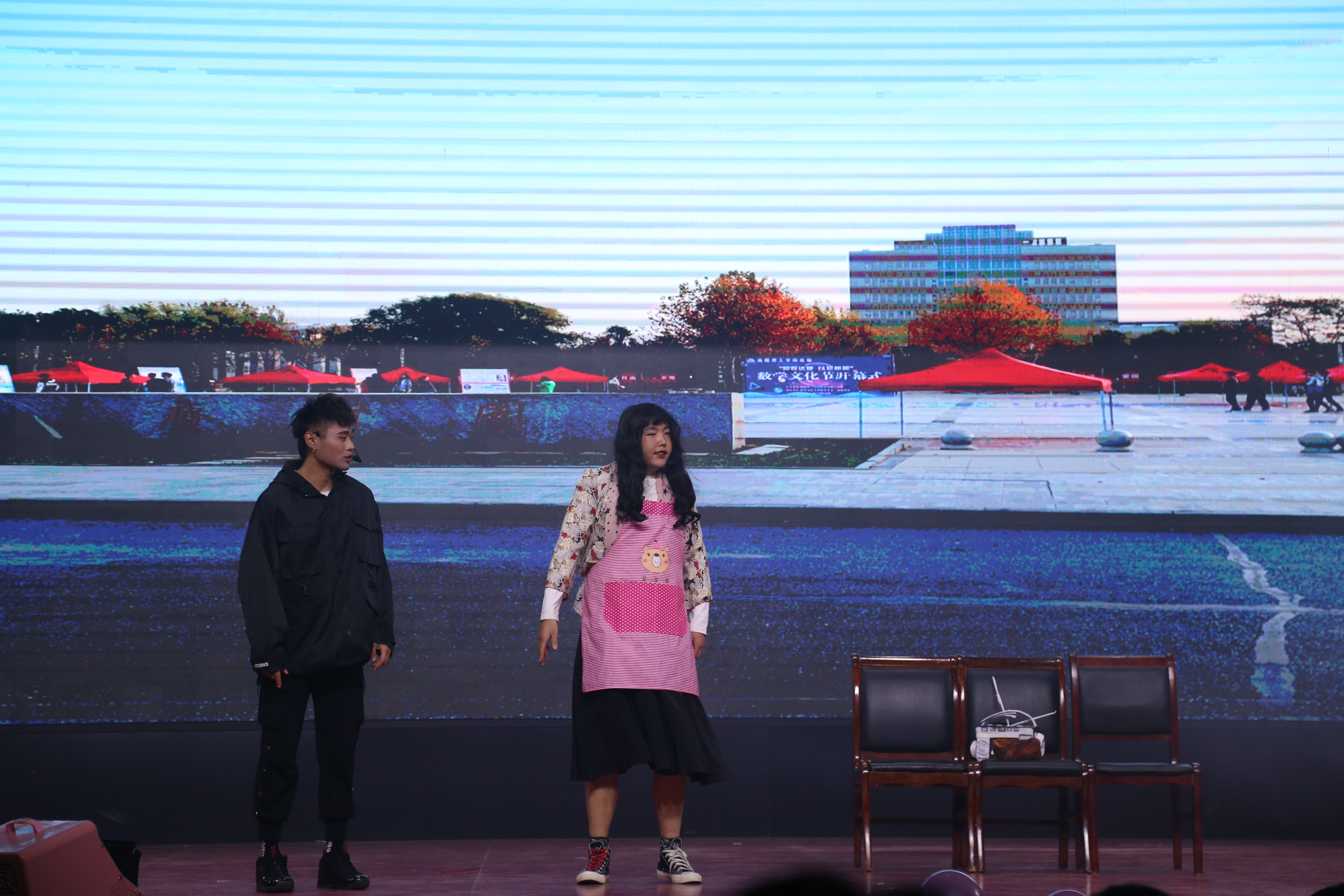 由博嘉翼、吴瑶等人带来的小品《我们》用片段叙述的形式,讲述了“我”的父母从相识、相知到相伴到老,从青年到暮年的爱情故事,他们一直以来的梦想就是能够两个人一起跳一支舞,却因为种种原因总是不能如愿以偿,感叹时光如梭,令台下观众在欢笑之余又不禁潸然泪下,在节目的最后他们终于一起共舞,为他们的人生画上一个完美的句号。演员们精湛的演技以及小品中恰到好处的笑点,带给观众们欢乐,将晚会气氛推向高潮。