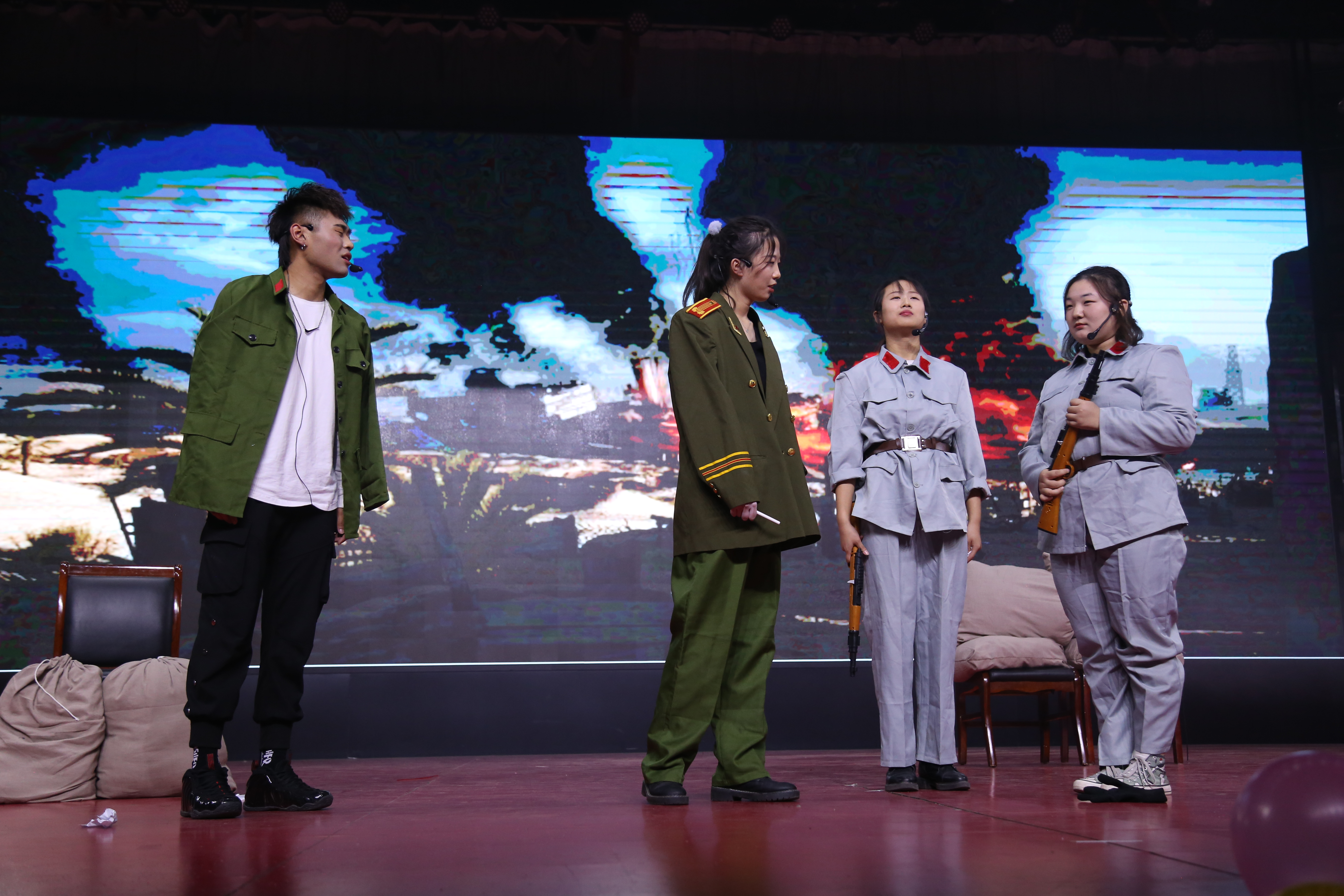 由傅嘉翼、王楠等人带来的小品《上阵父子兵》体现了战争年代的众多无奈和中国式父母沉重的爱,父母把他们认为最好的给了你,却忘记了考虑是否适合你。为观众带来欢笑的同时,也表达了“不结束战争,就永远没有和平”的主题。