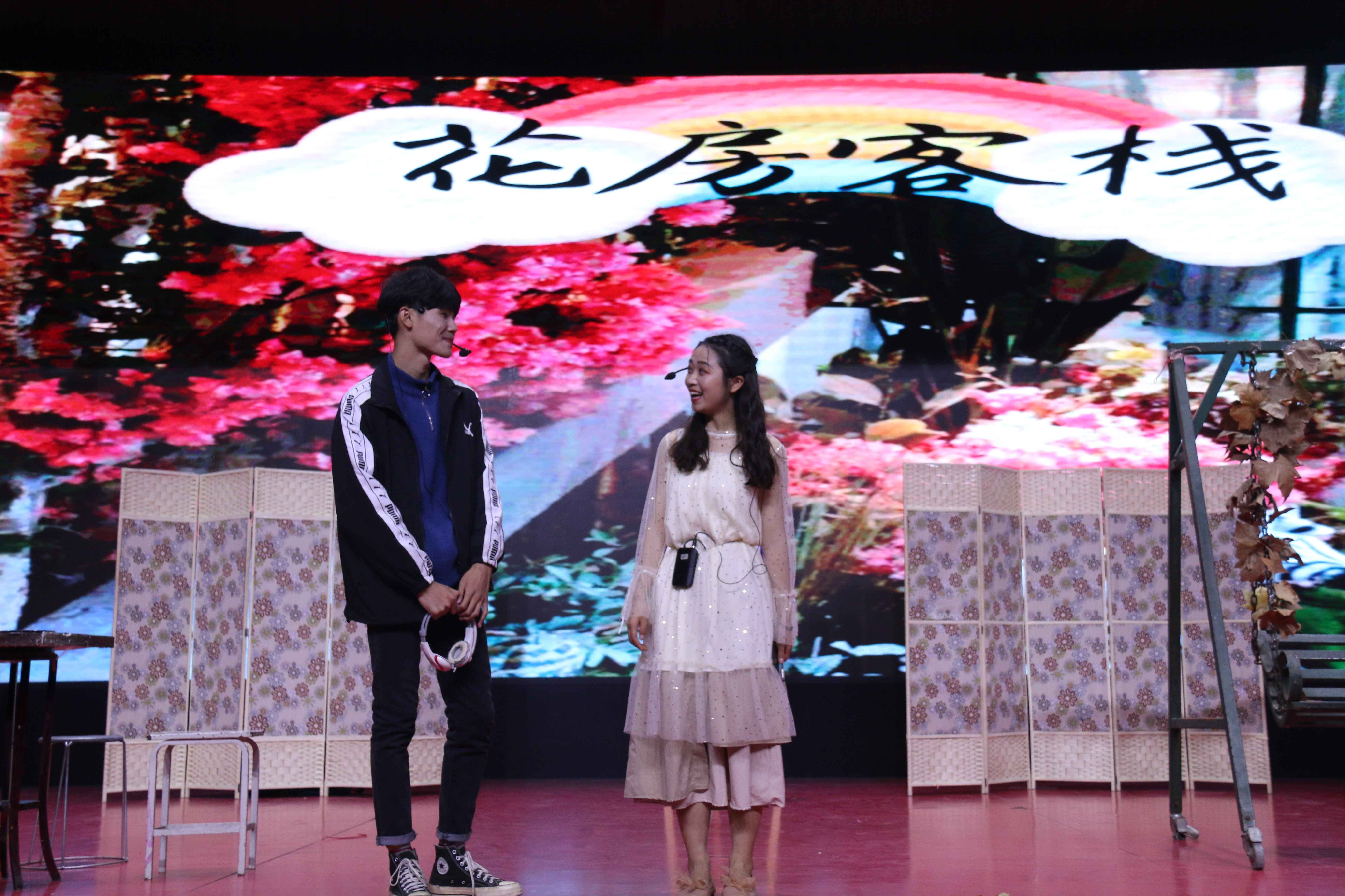 晚会以街舞社带来的《Onelife crew》作为开场,舞者们酷炫的舞姿使得观众阵阵高呼,晚会也在这种轻松愉悦的氛围中拉开序幕。小品《花房姑娘》向观众讲述了一对男女在追求爱情中,男生为了女生放弃了自己想要追逐的诗和远方的爱情故事,因为有爱,所以才愿意一起度过未来的每一个春夏秋冬,哪怕平凡,这样的爱,让现场的观众为之动容。