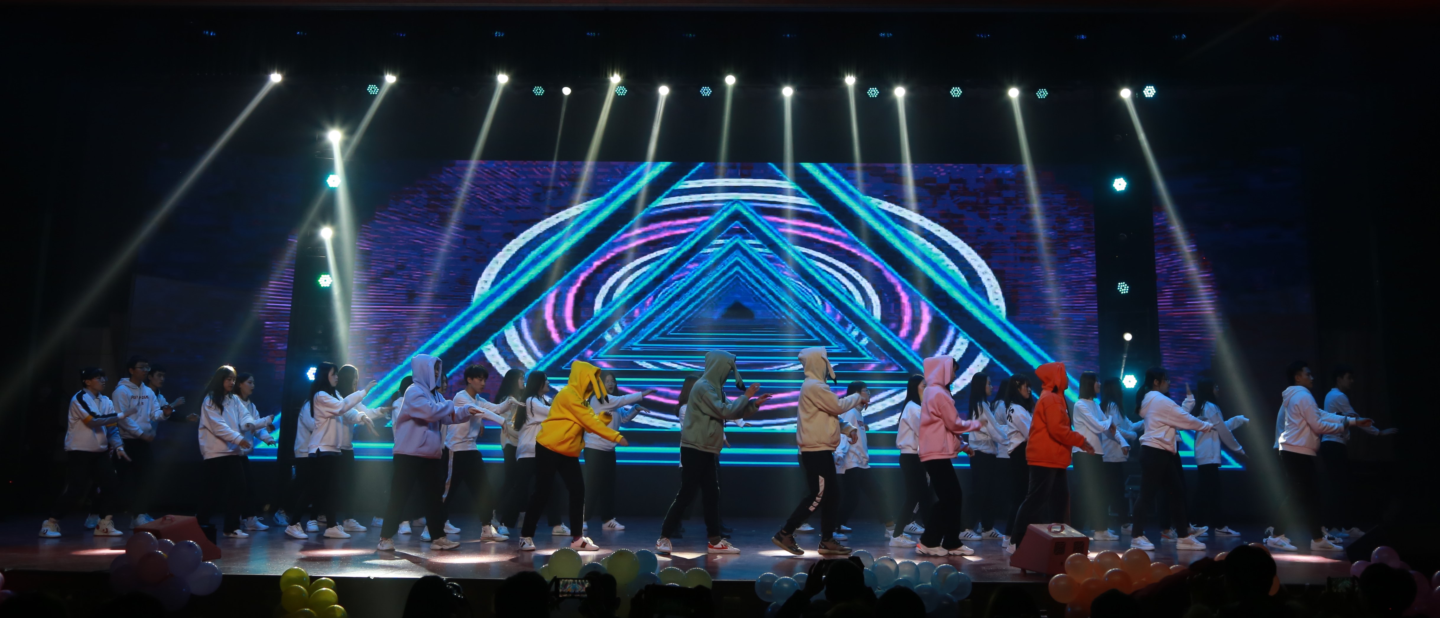 配音社带来的《配音混剪》用声音的魅力使在场观众兴奋不已,表演者们跟随视频的角色变换声音,上一秒还是柔软的女声,下一秒就变成了雄厚的男声,给观众呈现了一场听觉盛宴。19级英商二班带来的大合唱《Nameless》,几种不同风格的音乐巧妙地衔接在一起,同学们身着统一服装,整齐的站在舞台上唱着歌,无不体现出活力青春与激情。二十一届学生会成员带来的舞蹈《天天向上》,在原本的舞蹈基础上融合抖肩舞和抖音热歌等元素,丰富舞蹈表现形式,给观众不一样的视觉体验。
