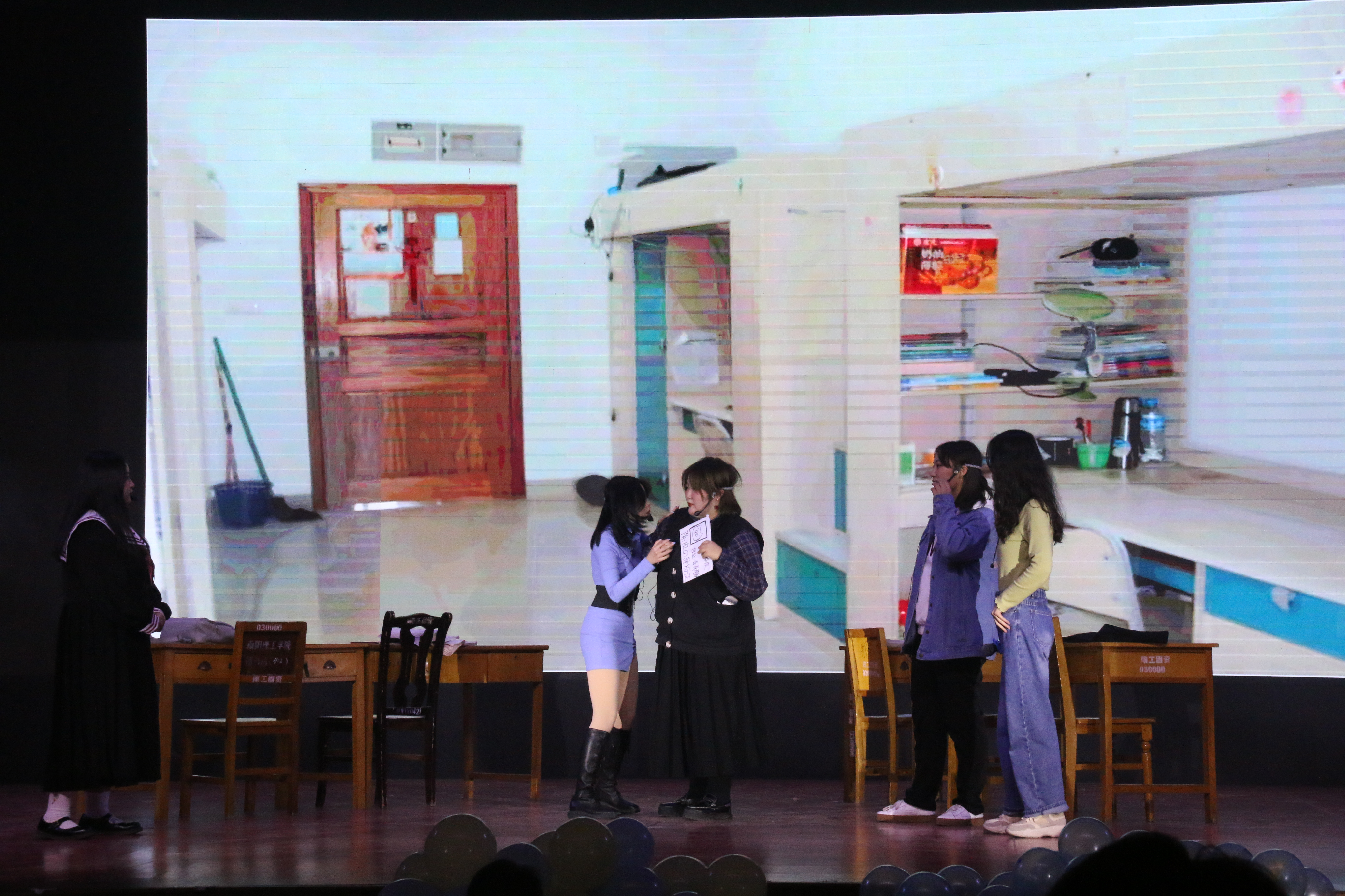 樱花社带来的舞蹈《Heartbeat Music》,日语歌和身着汉服的表演者展现出的不仅仅是舞蹈的优美,更体现出了外国语学院独有的日语专业特色,展现他国语言的文化魅力。小品《那些花儿》讲述的是在女生宿舍闹出的乌龙,一个宿舍内可能会因经济条件和消费观念的不同而产生分歧,甚至会为了面子去触碰校园贷来满足自己的虚荣心,通过阻止室友触碰校园贷的故事,告诉观众要理性消费,适度消费,千万不能触碰校园贷的道理。