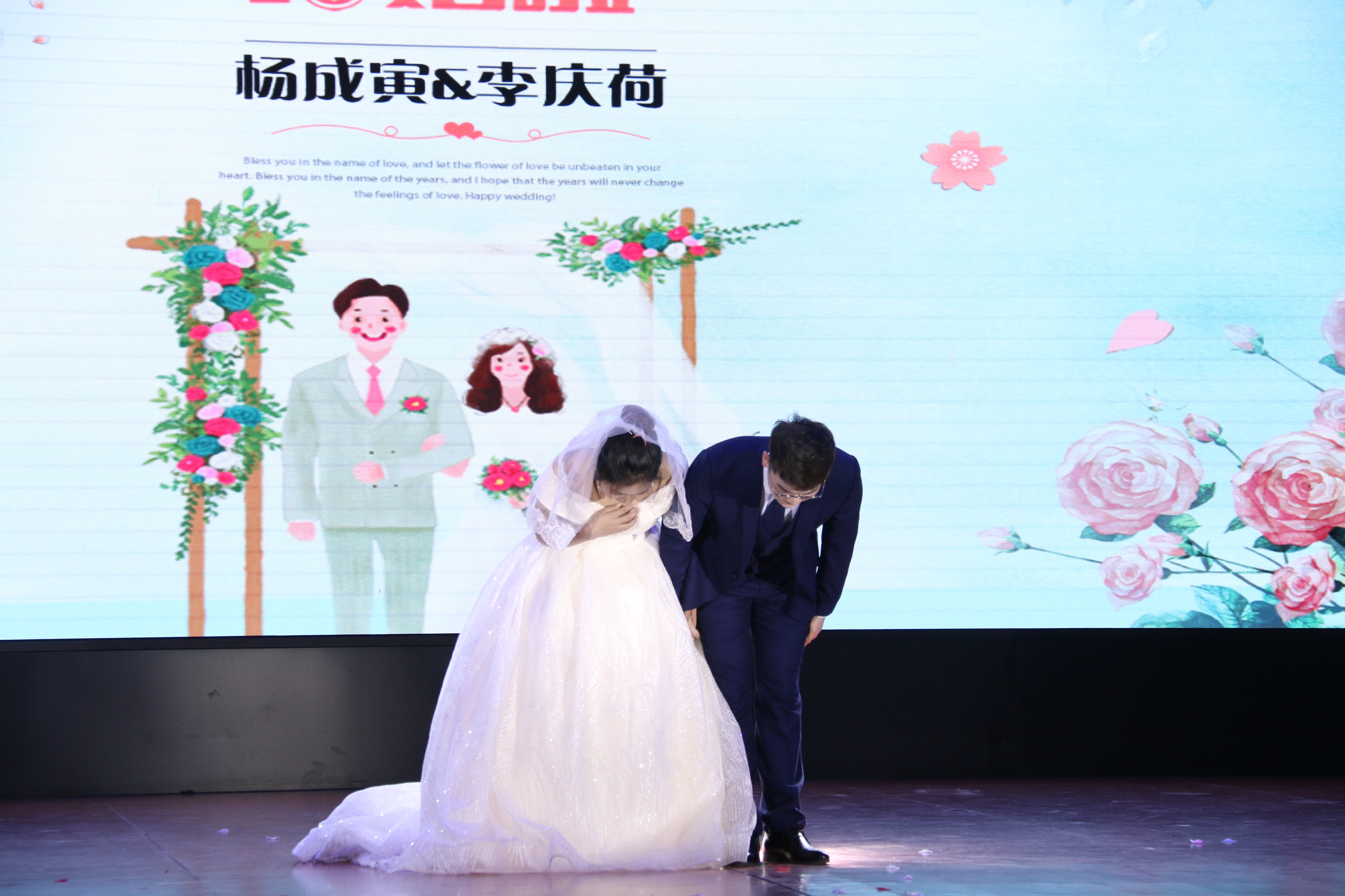 最后新郎新娘携手以家庭的形式向所有观众三鞠躬,以此表示感谢,这三鞠躬饱含着所有美好的光景和深情厚谊,新郎杨成寅先生和新娘李庆荷小姐的浪漫婚典在这美好的情境下圆满礼成。