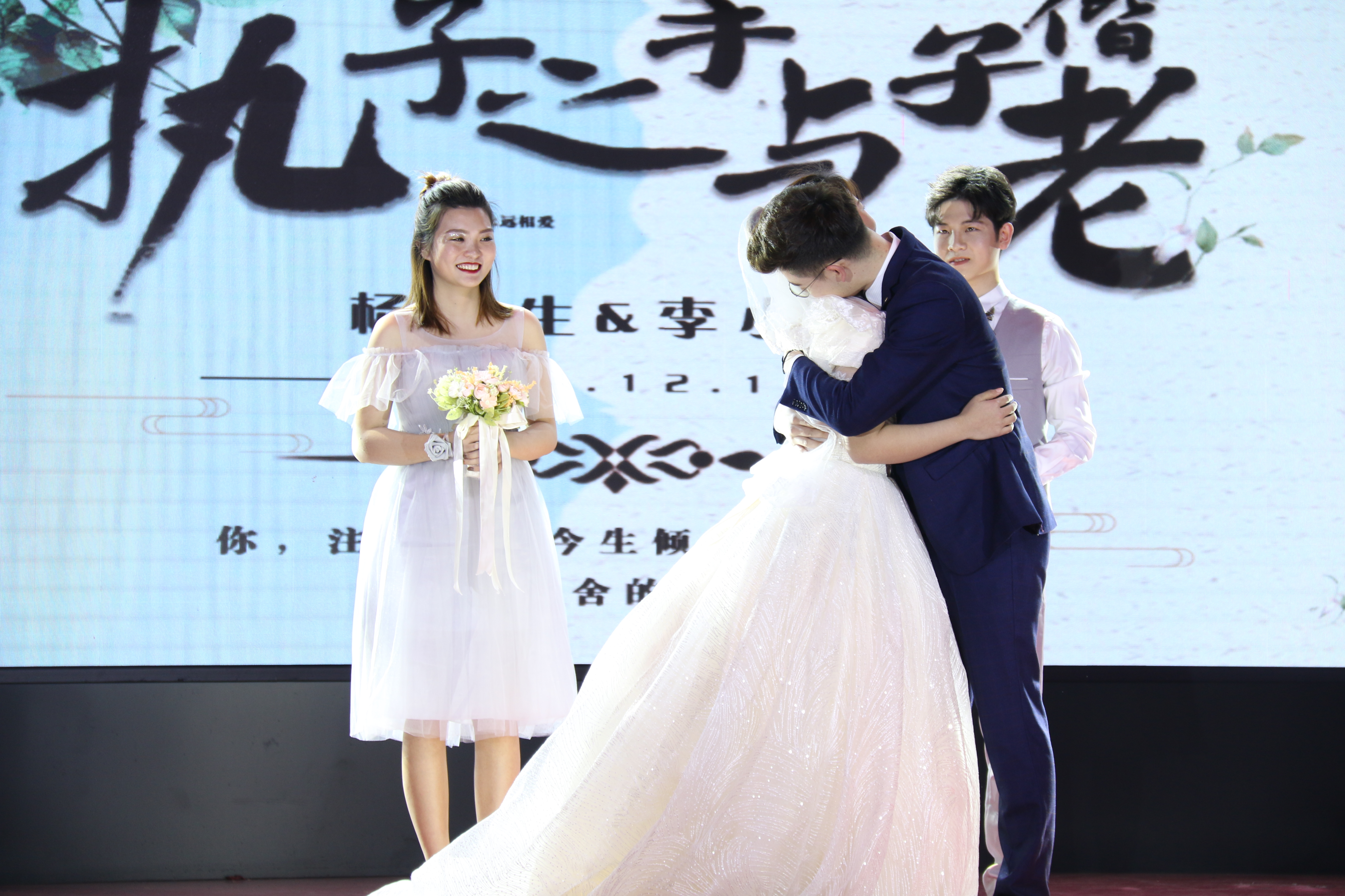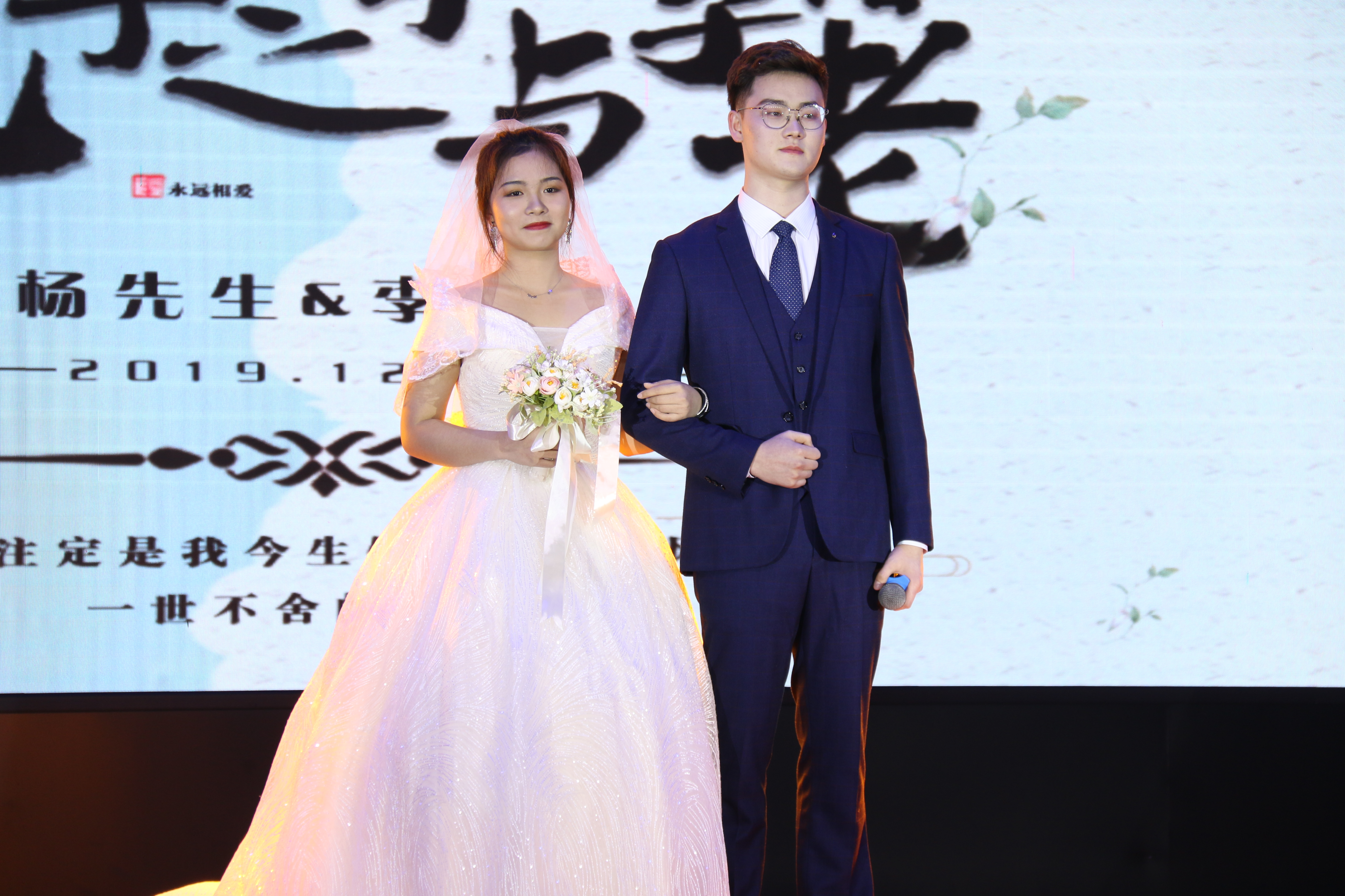 新娘伴随着悠扬的旋律,朗诵着浪漫的小诗缓缓走到新郎的面前,新郎和新娘一同幸福登场。"终于相亲相伴走到这一步","你可以嫁给我吗","你可以娶我吗",这是新郎新娘彼此爱的誓言,让这份承诺化作坚贞,化作永恒,让观众们再次感受到爱情的美好。