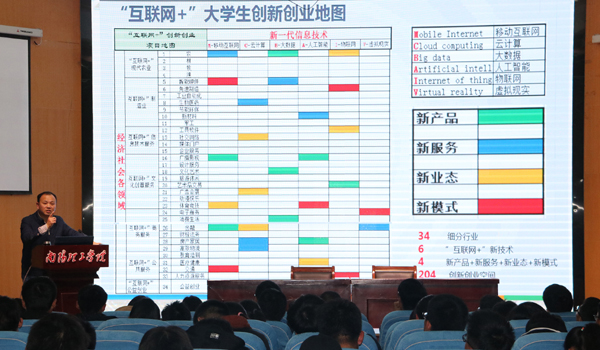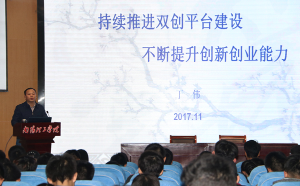 丁伟从什么是创新创业教育、双创教育的意义、如何结合专业寻找项目、组建团队和大学生创新创业大赛等方面对创新创业的重要性和可行性作了全面而细致地阐述。他结合实例指出了创新创业工作的重要性,加强了同学们对创新创业的理解与认识。他认为创新创业需要培养企业创业者、内部创业者、社会型创业者和政策型创业者等四种人才,他分析了大学生创业失败存在的对创新创业认识不足、缺乏社会经验,盲目跟从等几个方面的原因。他希望同学们能学好专业,发挥专业优势,努力提高各方面技能,在创新创业上有所作为。