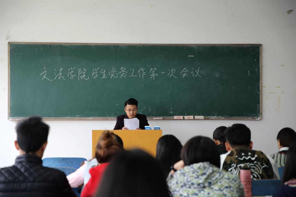 本站讯 【特约记者 周玲利 路庆龄】10月24日下午,我院全体学生党员第一次会议在10号楼320室召开。会议由学生党务工作小组组长蒋旭和韩倩倩主持,党支部成员、委员及学生会骨干参加。