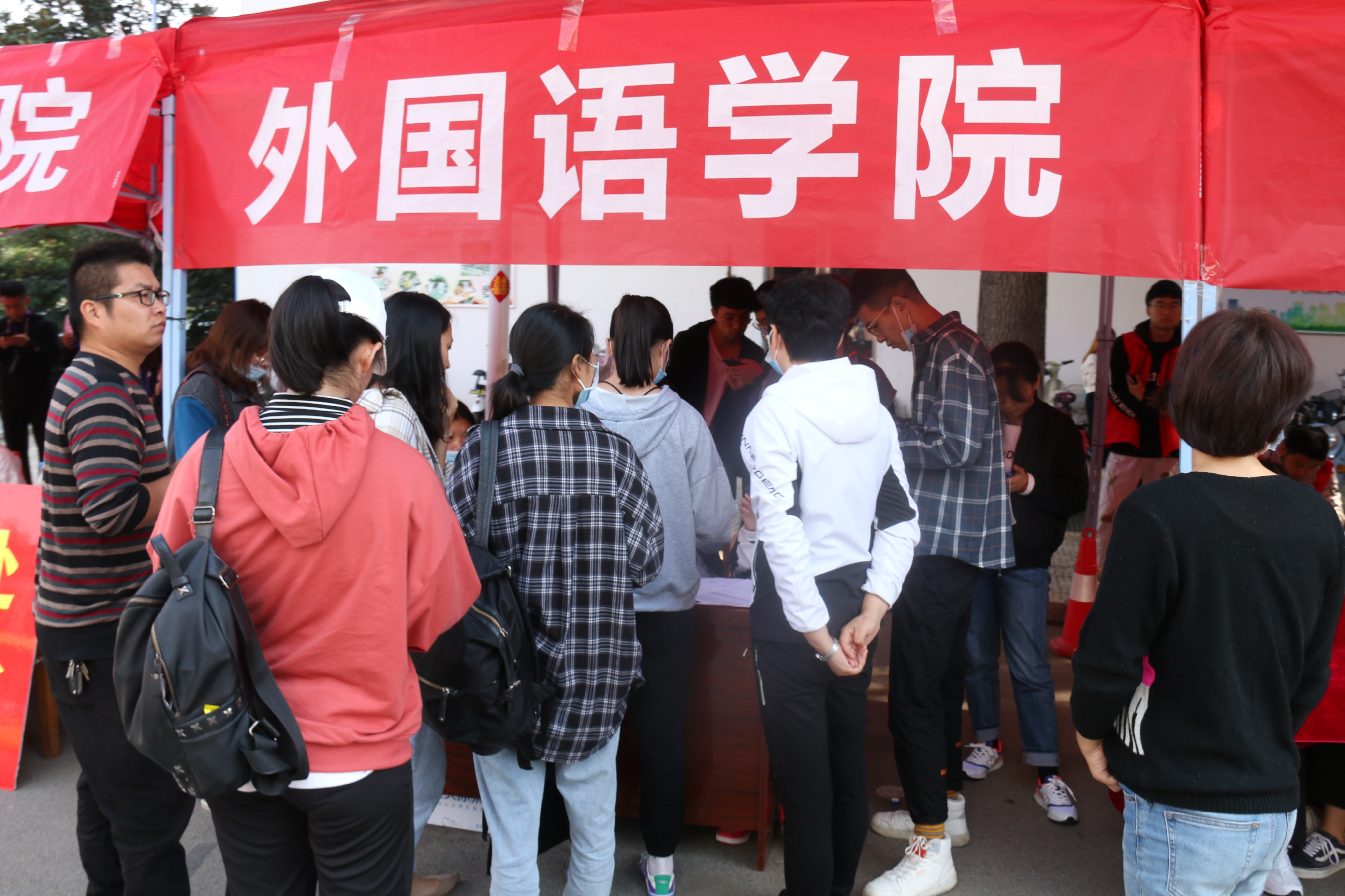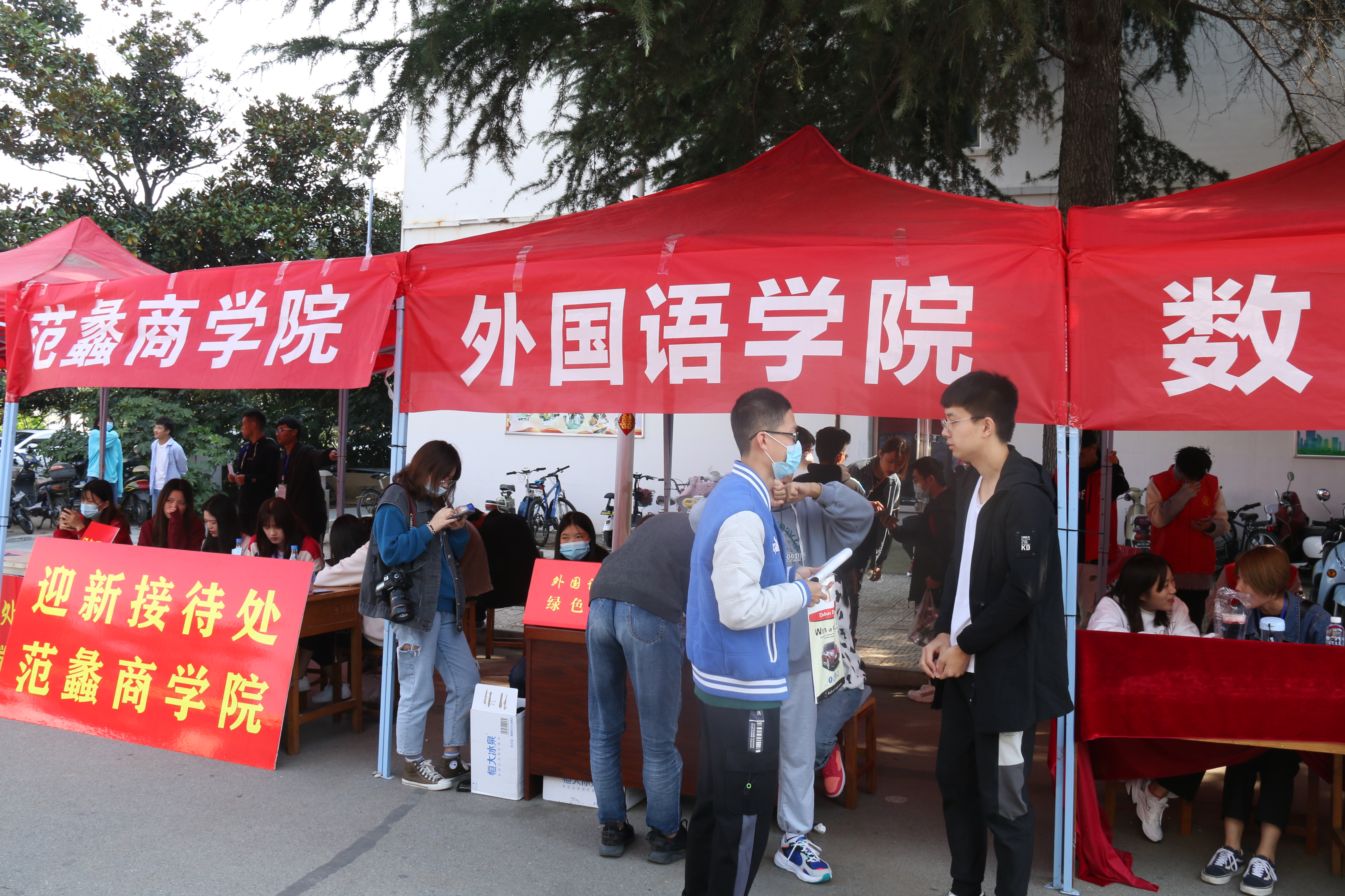 南阳理工学院外国语学院在老校区设立了迎新接待点,由外国语学院学生会成员组成的志愿者负责接待新生,登记新生个人信息,核对录取通知书,为新生解答疑问。在公寓楼下也有学生志愿者,核对新生的个人资料以及健康码等信息,协助新生办理入住手续。