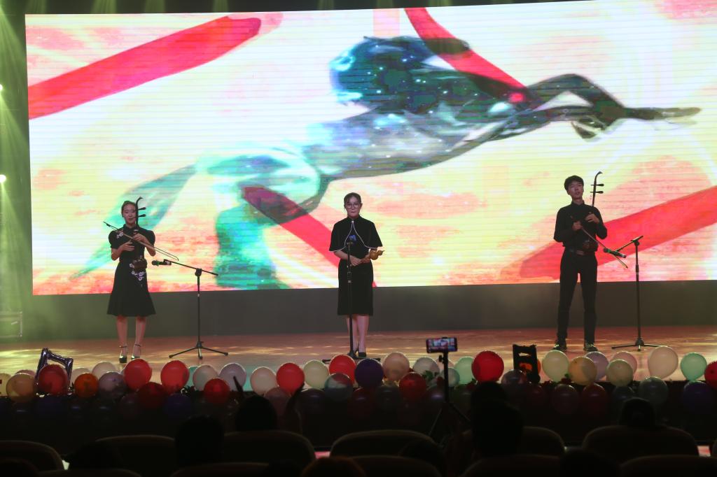 乐器合奏《赛马》仅用三种乐器就为观众展现了赛马时的激烈与动人心魄。透过微颤的琴弦,抚摸艺术的悸动,通过清幽的音调,倾听青春的萌芽。律动的旋律,跳跃的音符象征着青春的张扬与向上,带来了一场极佳的听觉享受。
