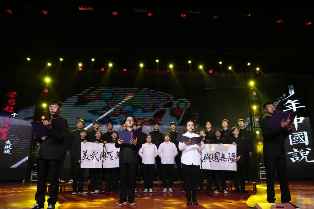 集体朗诵《少年说》朗诵者声情并茂、极富表现力和感染力的声音,展现出中国少年风,让台下的观众心潮澎湃、热血沸腾,表现了当代大学生“少年强则国强”的豪迈状语,激励观众发奋图强,勇挑建设少年中国重任的期盼。