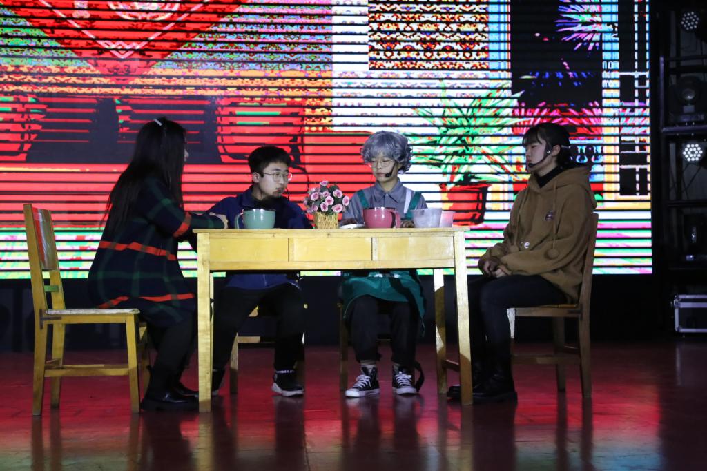 创意作品《后妈茶话会》演员用流利的英文以及精美唱功,充分的展示外国语学院的强大魅力与特色,精英助理团的俊男靓女们身着王子公主的服饰,仿佛动漫中走出的人物一般,将本次晚会推向高潮。