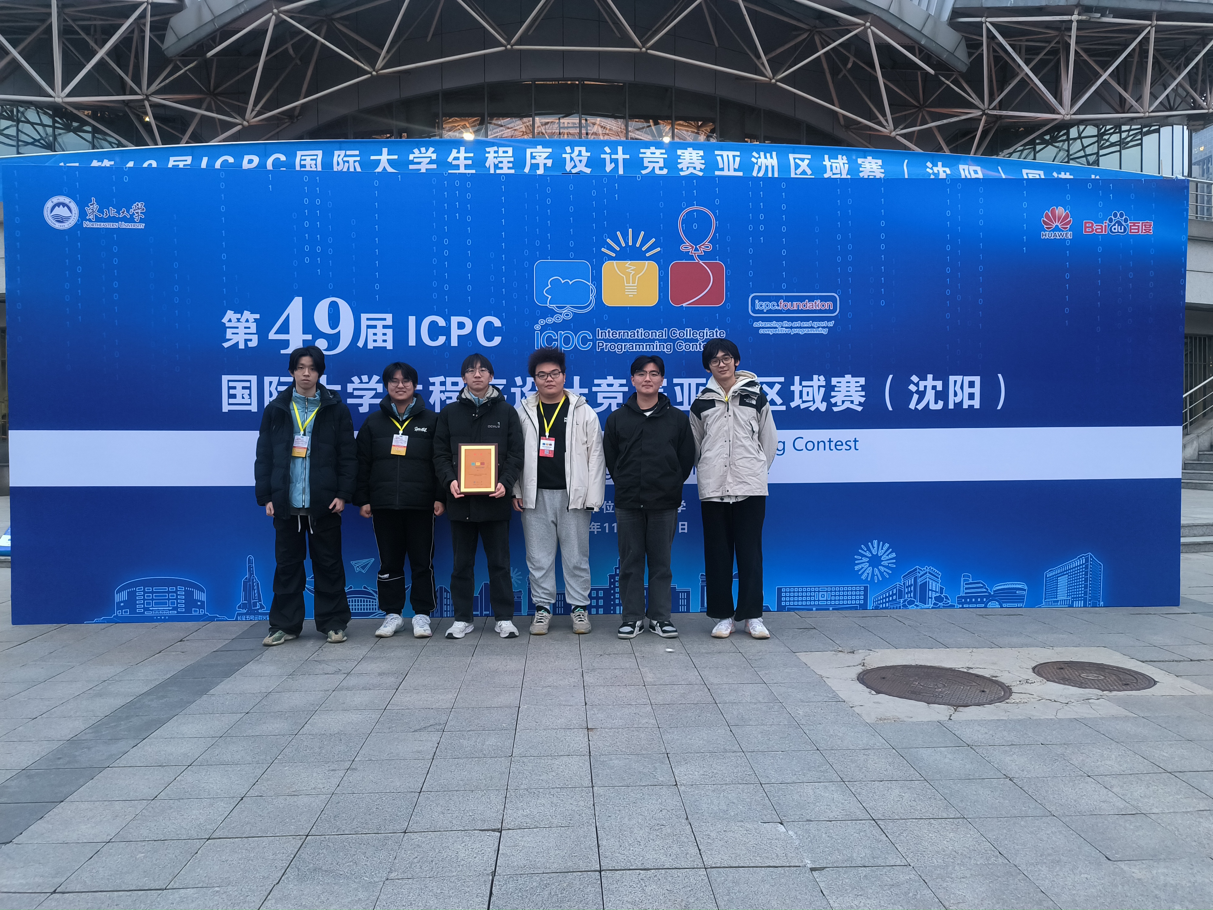 11月23日至24日,第49届ICPC国际大学生程序设计竞赛亚洲区域赛(沈阳)在东北大学举行,大赛吸引来自北京大学、浙江大学、上海交通大学等200多所高校的320支队伍同场竞技。我校计算机与软件学院派出的李灿辉、禹云龙、张泽楷三位同学组成的代表队,凭借出色的表现,荣获铜牌一枚。