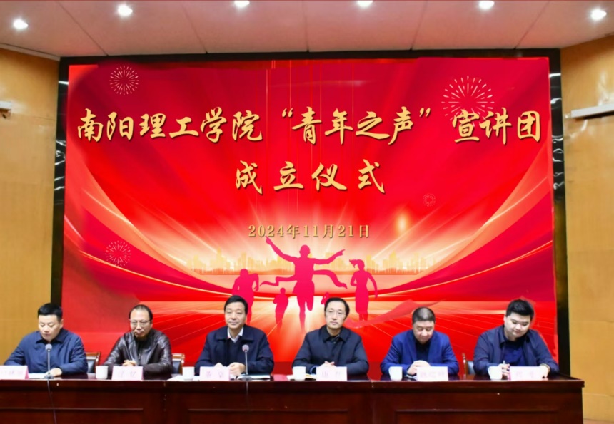 本网讯(学生记者/陈阳)为深入学习贯彻习近平新时代中国特色社会主义思想,提升思想政治教育工作实效,11月21日上午,南阳理工学院“青年之声”宣讲团成立仪式暨首次示范宣讲在第二报告厅举行。校党委副书记、工会主席董豪,党委组织部、党委宣传部、党委统战部负责人出席活动,各教学院团委书记、团员青年代表参加活动,活动由校团委负责同志主持。