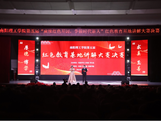 本网讯(特约记者/刘鑫宇 学生记者/陈琮太)为落实立德树人根本任务,深挖红色文化内涵,传承红色基因,做好做实学生爱国主义教育,引领广大学子砥砺品格、奋发图强,12月10日,南阳理工学院第五届红色教育基地讲解大赛决赛在毕业大厅举行。校党委副书记、工会主席董豪,党委组织部、党委宣传部、党委学生工作部主要负责同志及部分教学院党委副书记、辅导员出席活动。