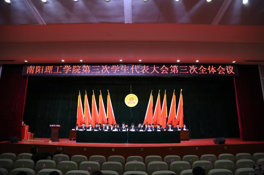 下午16:30,于西北校区音乐厅举行南阳理工学院第三次学生代表大会第三次全体会议。总检票人宣读18名委员会人员名单,宣读完毕后,第三次学生代表大会第三次全体会议结束。