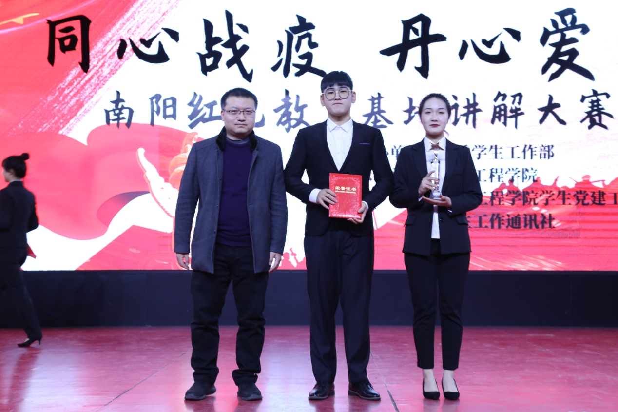 最后,南阳理工学院党委学生工作部副部长白林驰讲话,他表示这个比赛举办的很成功,在创新中落到实处,从南阳当地的真人真事出发,让大家更加清晰地了解到红色精神。同时,比赛主题中的“同”也在比赛中有些深深的体现,在疫情下,辅导员及各位老师与学生肩并肩共同抗击疫情。他进一步强调,如今疫情防控常态化,辅导员老师会与同学们携手共进,全校的老师和工作人员会与大家一起同心抗疫,在工作上与大家同行,在生活中与大家做知心朋友。