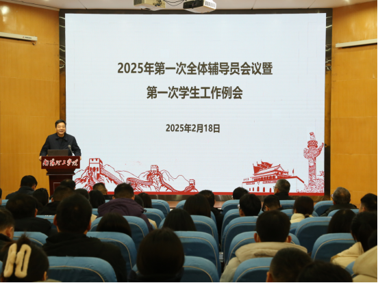 董豪回顾总结2024年学生工作取得的成绩并给予充分肯定,就2025年学生工作提出具体要求。他强调,一是学生安全是校园和谐稳定的根基,是办学治校不可逾越的底线。全体学工人要时刻绷紧安全这根弦,以“时时放心不下”的责任感,以制度和教育为基础,切实把学生安全稳定工作落到实处;二是心理健康是大学生成长发展的前提和基础。要强化调查研究,注重教育引导,做好咨询服务和家校、医校合作,做到防范化解风险隐患,杜绝极端事件发生;三是共青团工作在大学生活中扮演着至关重要的角色。要继续保持优势,提高社会实践工作育人成效,继续推动挑战杯工作再创佳绩;四是新学期征兵工作任务重、时间紧,我们要广泛动员,精准服务,为有意愿参军入伍学生做好各方面服务工作,定期召开会议,分析形势、总结经验、解决问题,力争圆满完成2025年征兵工作。