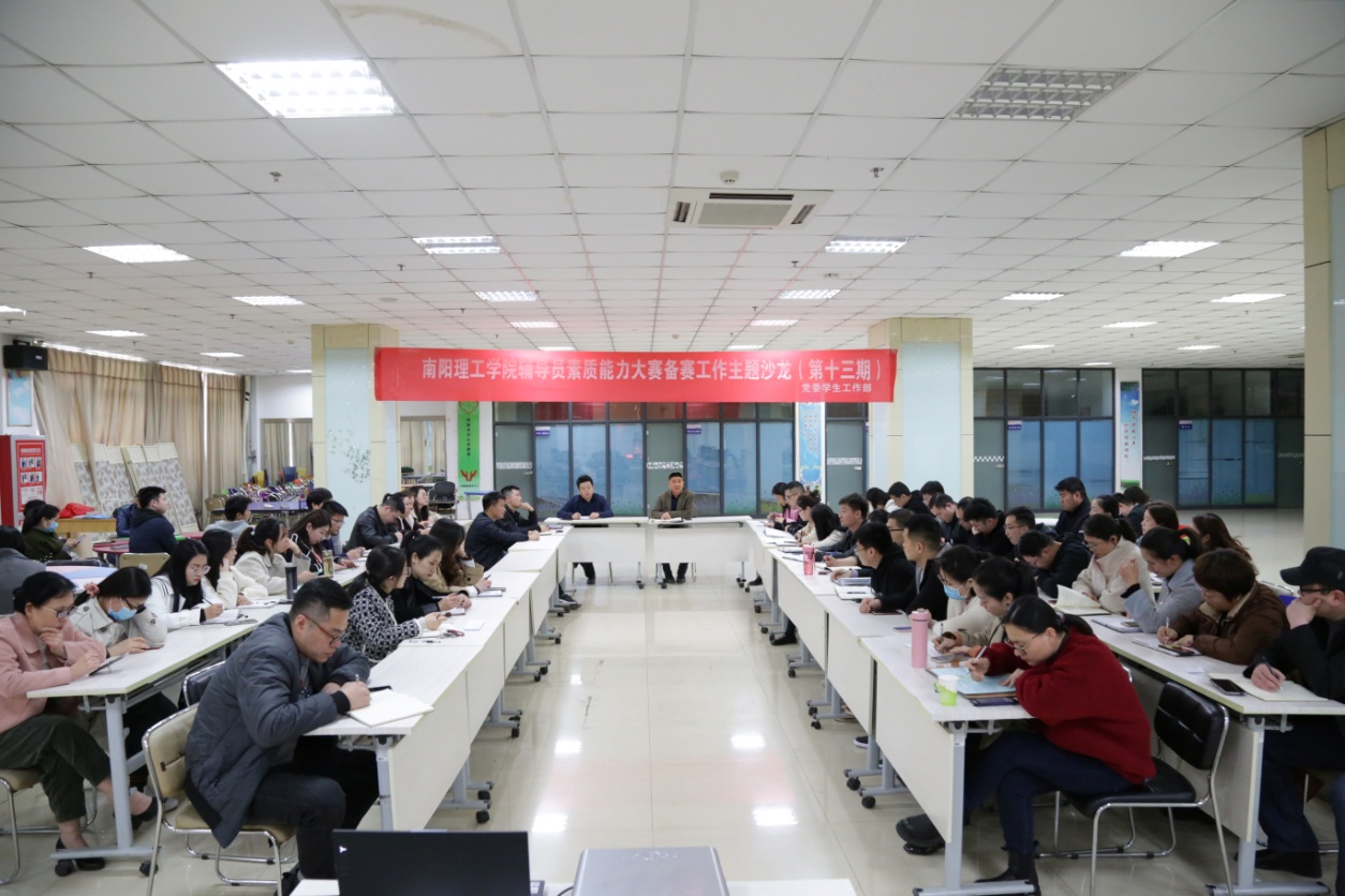 本网讯(学生记者/ 杨乐乐 朱柯君 汪承驷 校对/魏凯瑞413日,南阳理工学院辅导员素质能力大赛备赛工作主题沙龙(第十三期)在阳光心理广场顺利举行。校党委学工部部长路瑞峰、副部长白林驰,教育科科长黄晨及全体专兼职辅导员参加本次沙龙。