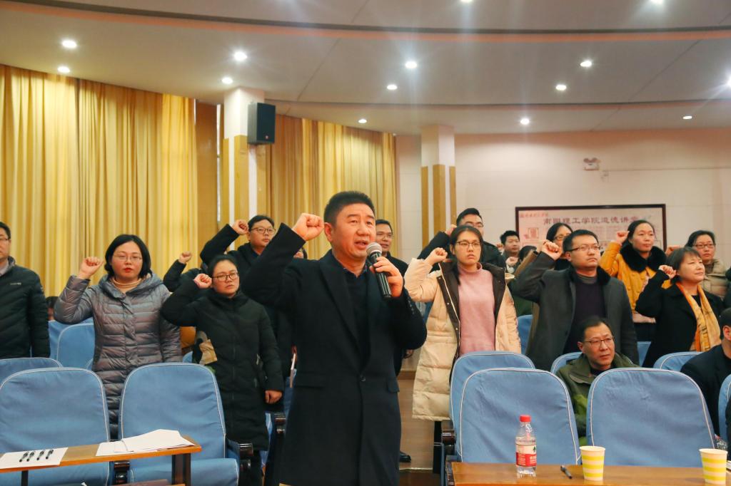 党委学生工作部部长、学生处处长路瑞峰担任领誓人与全体辅导员进行宣誓。在场辅导员们字字铿锵有力,字里行间体现着对做好辅导员工作的信心和决心。