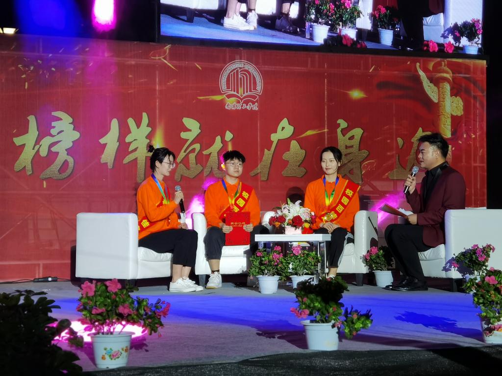 表彰典礼上,“社团之星”获得者们用歌曲《国家》表达了对祖国的祝福;“文体之星”代表们现场表演了精彩的舞蹈《舞动青春》;“党员之星”称号的获得者们在这个特殊的舞台上重温入党誓词,用铮铮誓言做出了新一代大学生的庄严承诺;传媒学院的同学们用诗朗诵《中国力量》带大家学习和弘扬伟大的抗疫精神;“先进班集体之星”“创新创业之星”“道德之星”的代表们则为大家分享了奋斗过程中的人生感悟。