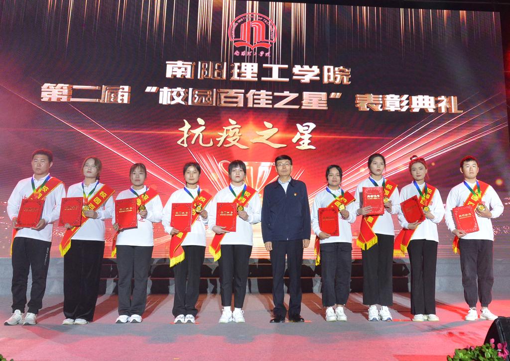 为深入学习贯彻习近平新时代中国特色社会主义思想,培育和践行社会主义核心价值观,发挥先进典型的示范带动作用,激励学生勤奋学习、努力进取,营造弘扬正气、歌颂真情、倡导善良、崇尚高雅、争当先锋的校园文化氛围,南阳理工学院于2020年11月份启动了第二届“校园百佳之星”评选活动。评选共设立党员之星、学业之星、创新创业之星、文体之星、道德之星、励志之星、学生干部之星、抗疫之星、优秀社团之星、先进班集体之星、文明宿舍之星等11类奖项,每类评选 10 名,经学生个人申请,各教学院初评、推荐,学校评定、公示,最终评选出110名学校第二届“校园百佳之星”优秀学生和集体代表。