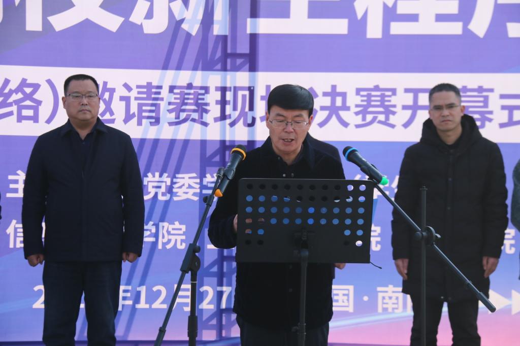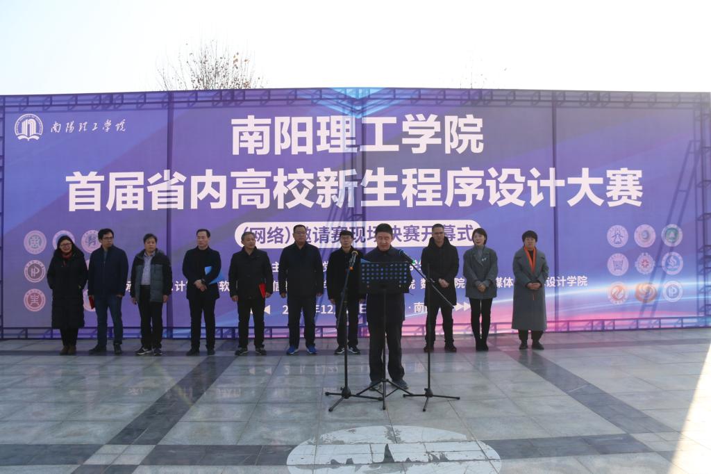 本网讯(学生记者/学通社 戴世彤 李佳一 校对/刘子骁)12月27日,由南阳理工学院党委学生工作部主办,计算机与软件学院、信息工程学院、土木工程学院、数理学院和数字媒体与艺术设计学院承办的南阳理工学院首届省内高校新生程序设计大赛(网络)邀请赛现场决赛开幕式于南阳理工学院齐贤广场顺利举行。南阳理工学院党委副书记、工会主席张伟教授出席了本次活动,南阳理工学院党委学生工作部部长、学生处处长路瑞峰、校团委书记、学生工作部副部长郭兴华、各学院院长及书记代表、各学院教练员代表、裁判员代表以及各学院学生代表共同参加了本次开幕式。