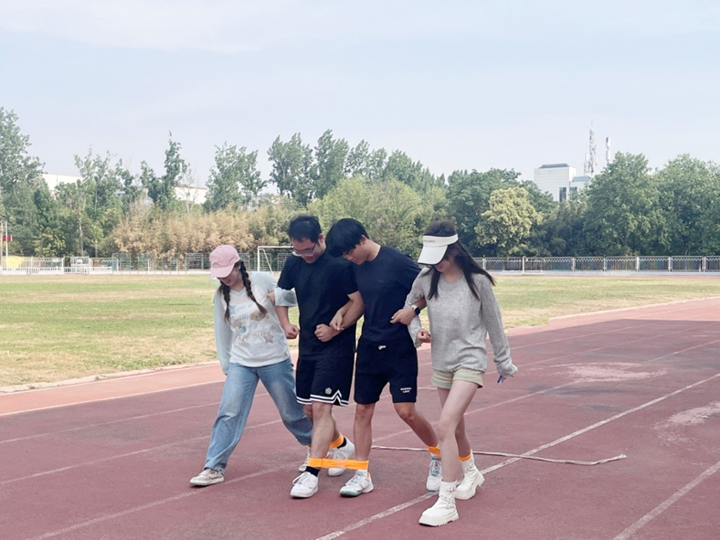 此次趣味运动会将传统民俗与趣味竞技巧妙融合,吸引众多师生踊跃参与。现场氛围热烈,最引人注目的当属“旱地龙舟,齐心协力”比赛,50米的赛道上队员们齐声呼喊口号,步伐一致,向着终点全力冲刺。“多人多足,默契比拼”同样精彩,每队4位选手相邻的腿互相绑定,在30米的赛道上他们相互扶持、相互配合,不断调整节奏,努力保持平衡,朝着终点线稳步迈进。