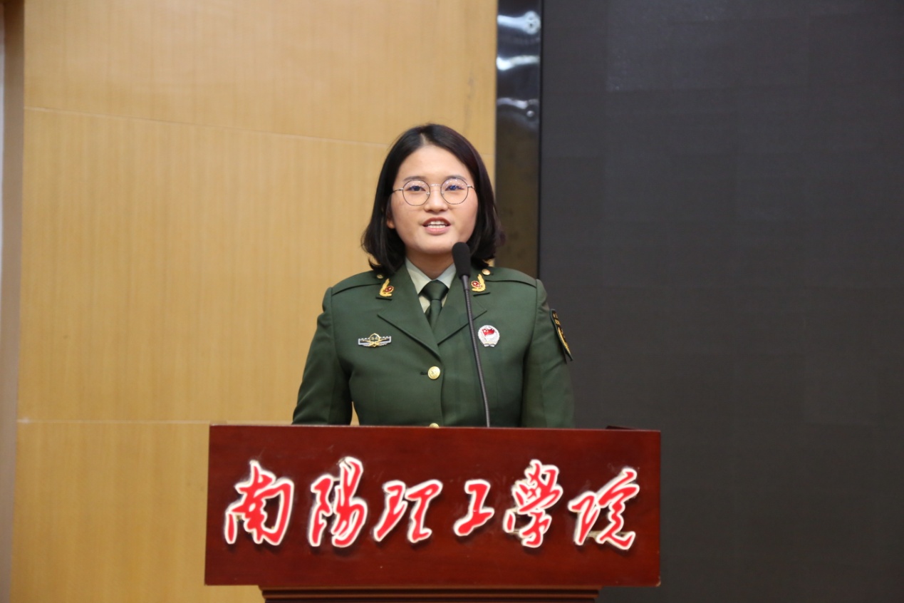大学生退役军人协会代表耿振东和景李蕾同学发言,他们分享了在部队的经历、感悟与收获,并代表协会做出了庄重承诺,要以首战用我,用我必胜的信念,争取把大学生退役军人协会打造成一个标杆协会。全体大学生退役军人协会成员集体宣誓:“我志愿加入南阳理工学院大学生退役军人协会……退役不退志、退伍不褪色,时刻准备迎接新的挑战!”铿锵有力的誓言在会场久久回荡。